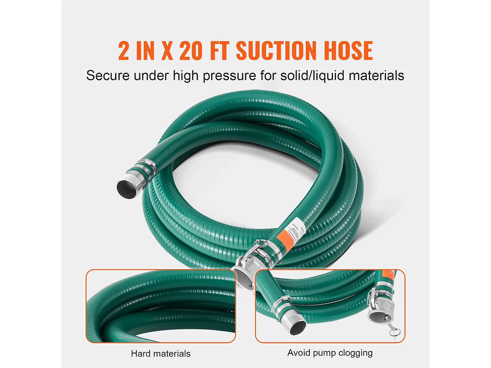 Manguera de Aspiración SucceBuy, 50,8 mm x 6,1 m, Kit de Calidad Verde, con Conectores