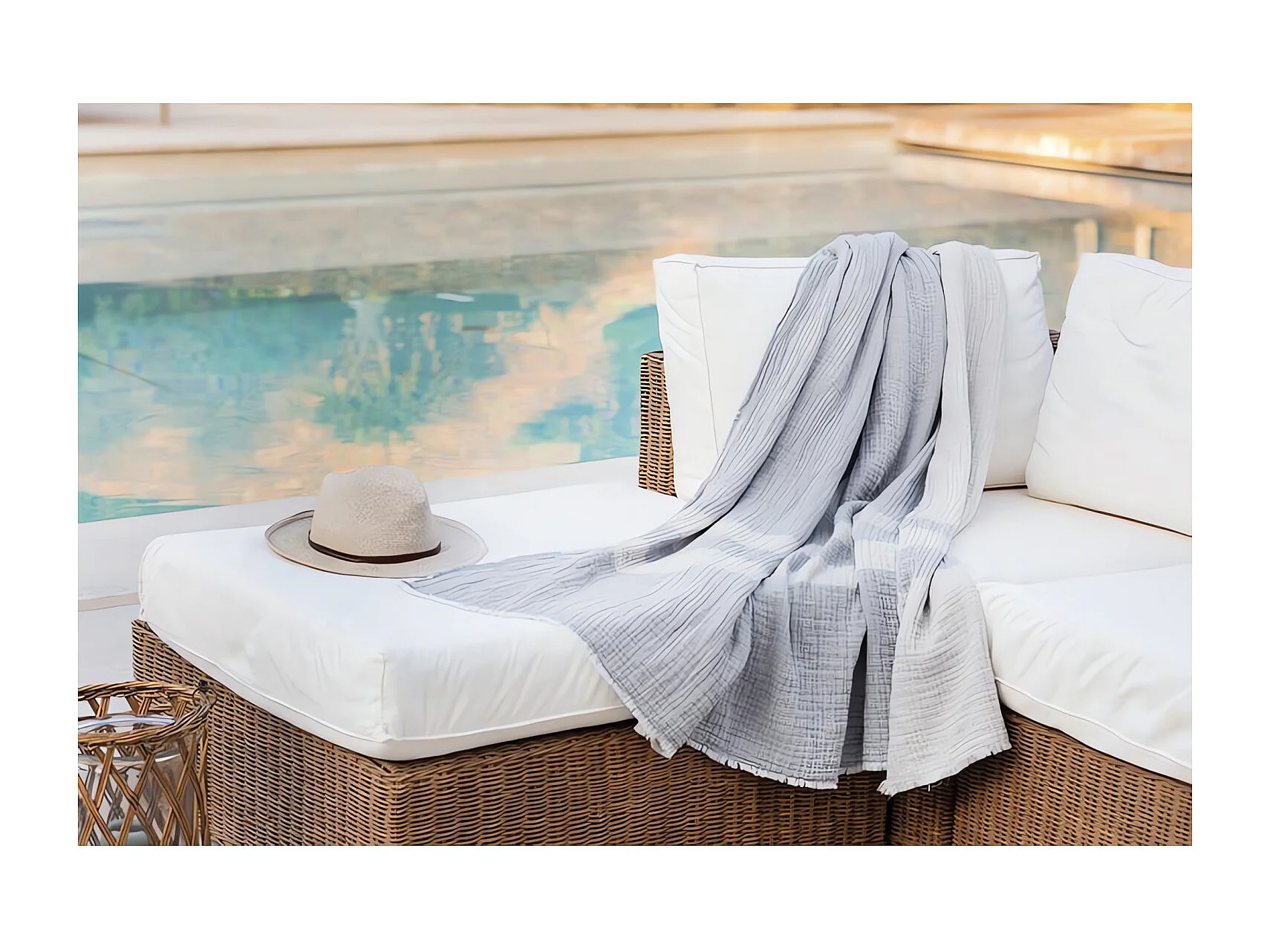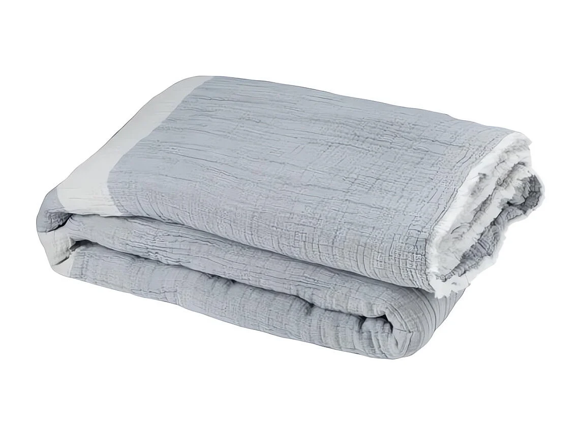 Manta de 150x200 cm en algodón gofre PIENZA natural y azul agua, de Toison d'or