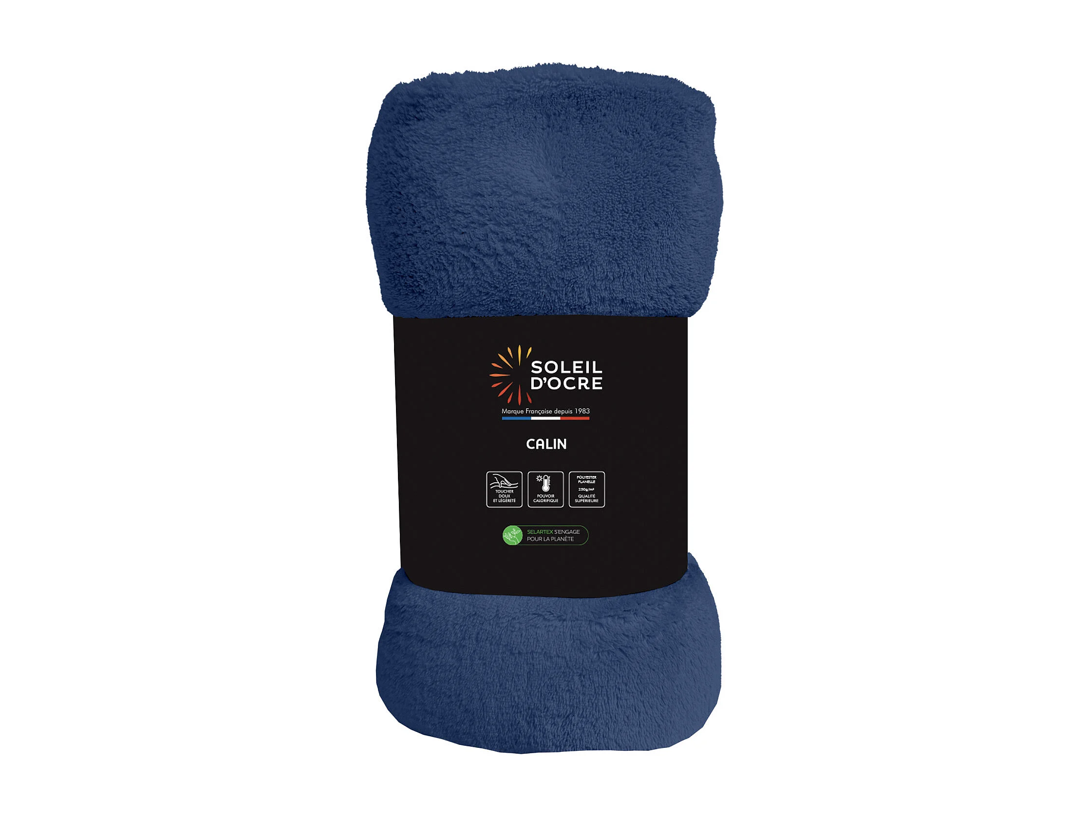 Manta de franela 180x220 cm CALIN marino, por Soleil d'Ocre