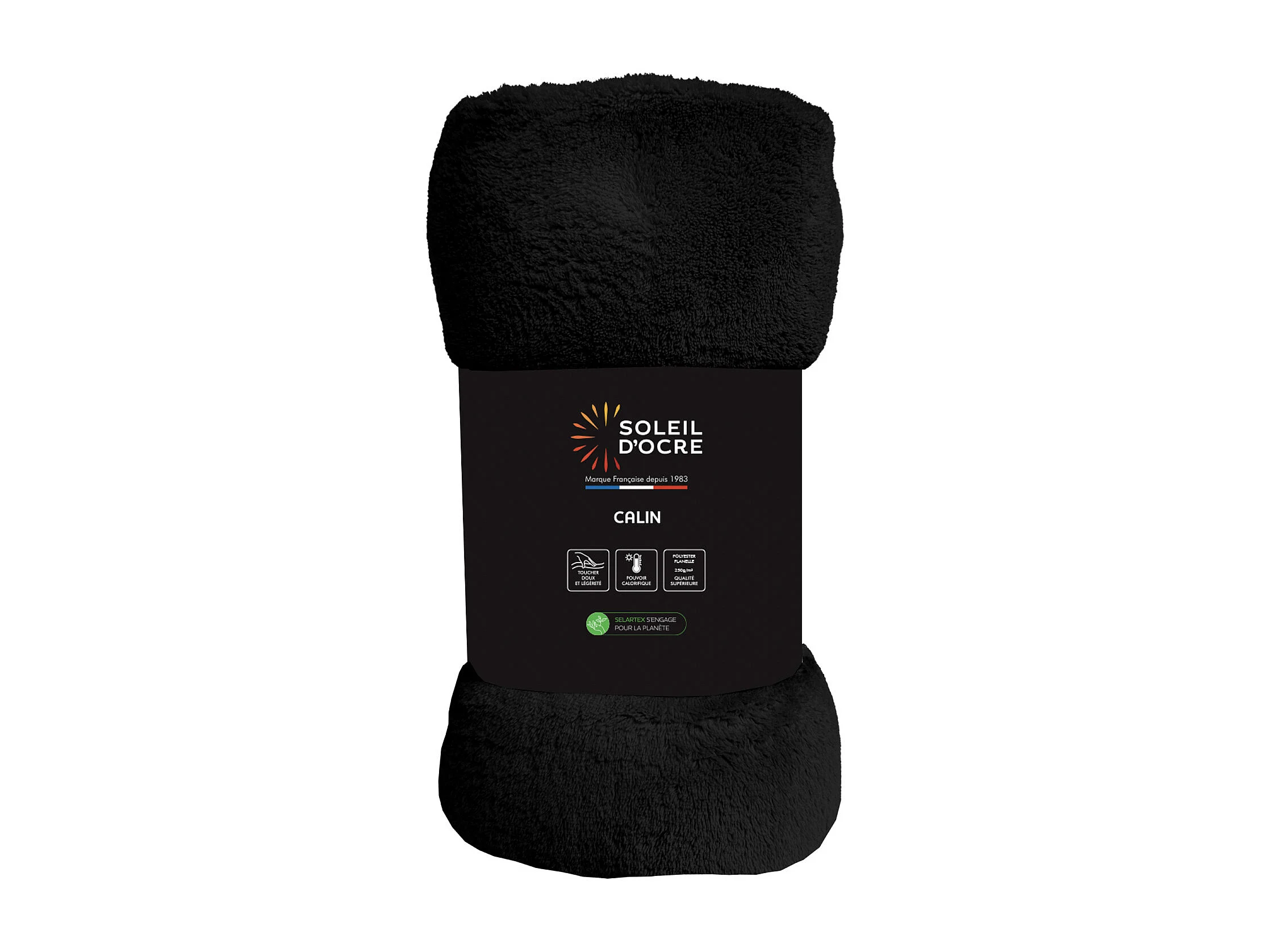 Manta de franela 180x220 cm CALIN Negro, por Soleil d'Ocre