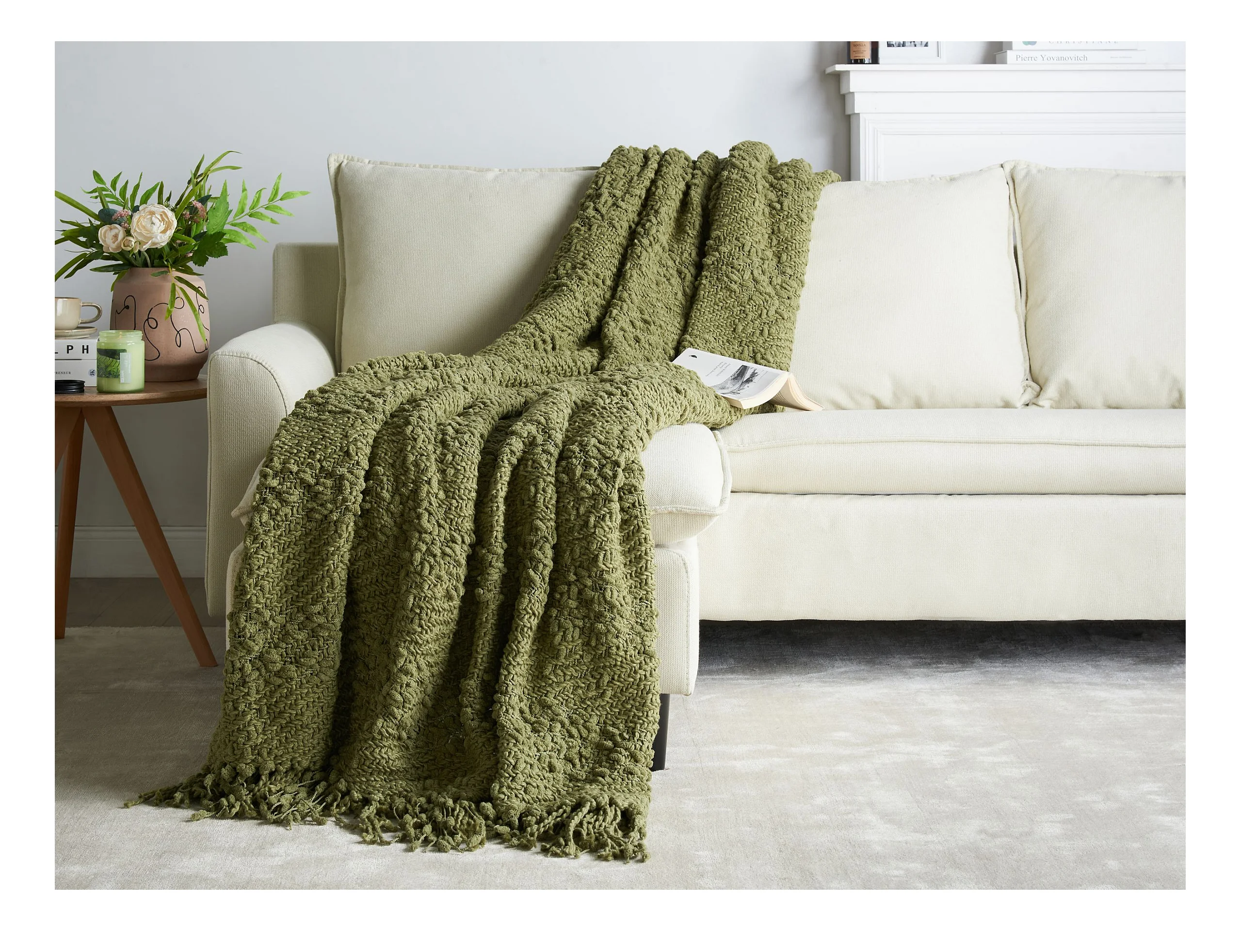 Manta VELLA Algodón 200 x 220 cm Verde oliva