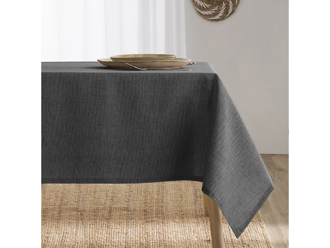 Mantel Antimanchas Resinado Liso Algodón Combinado Elba Gris Oscuro 140x200 cm