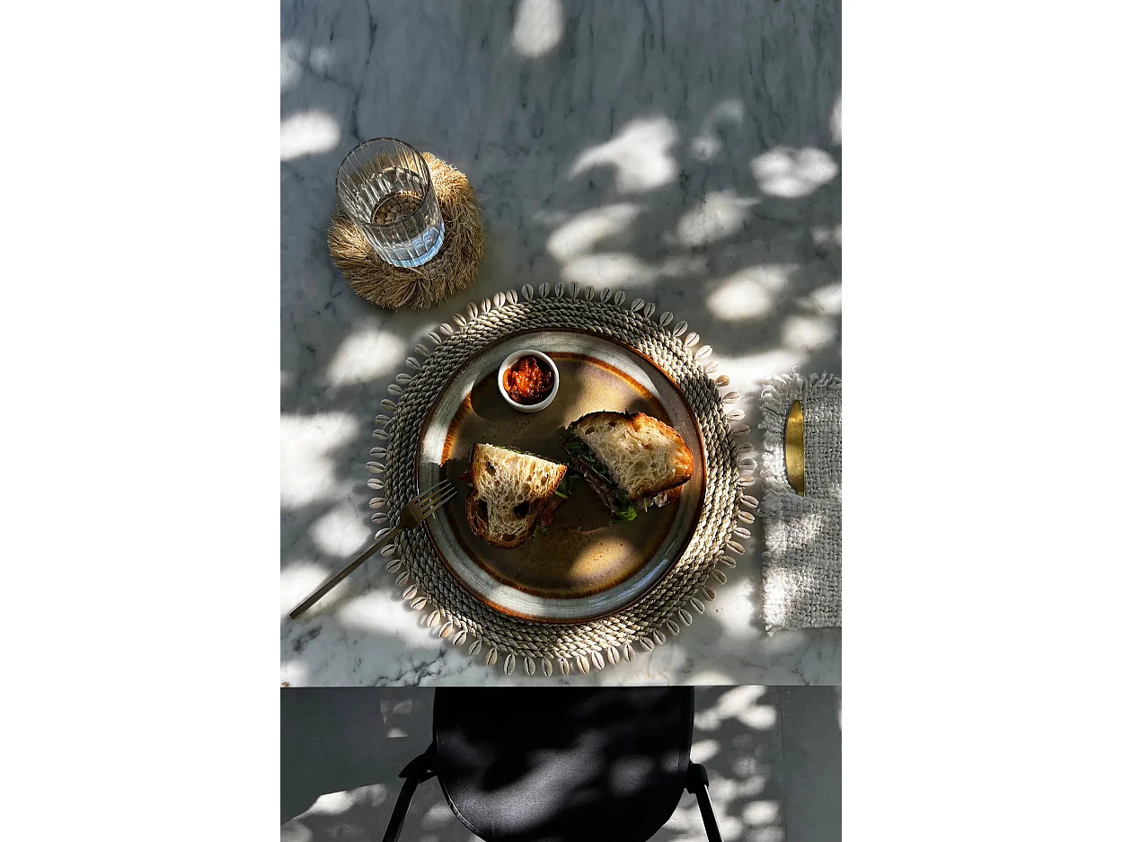 Juego de cubiertos de paja negra de 24 piezas con mangos trenzados de polipropileno negro