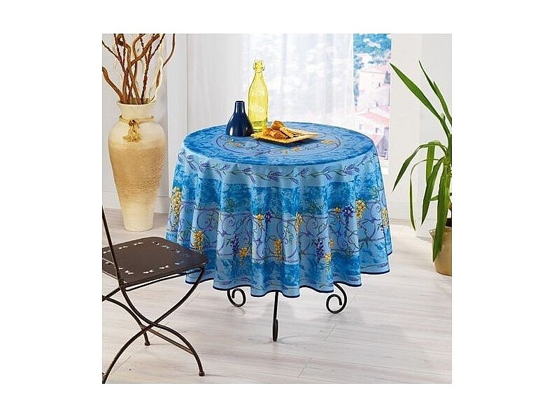 Mantel provenzal redondo antimanchas poliéster azul glicina 180 x 180 cm