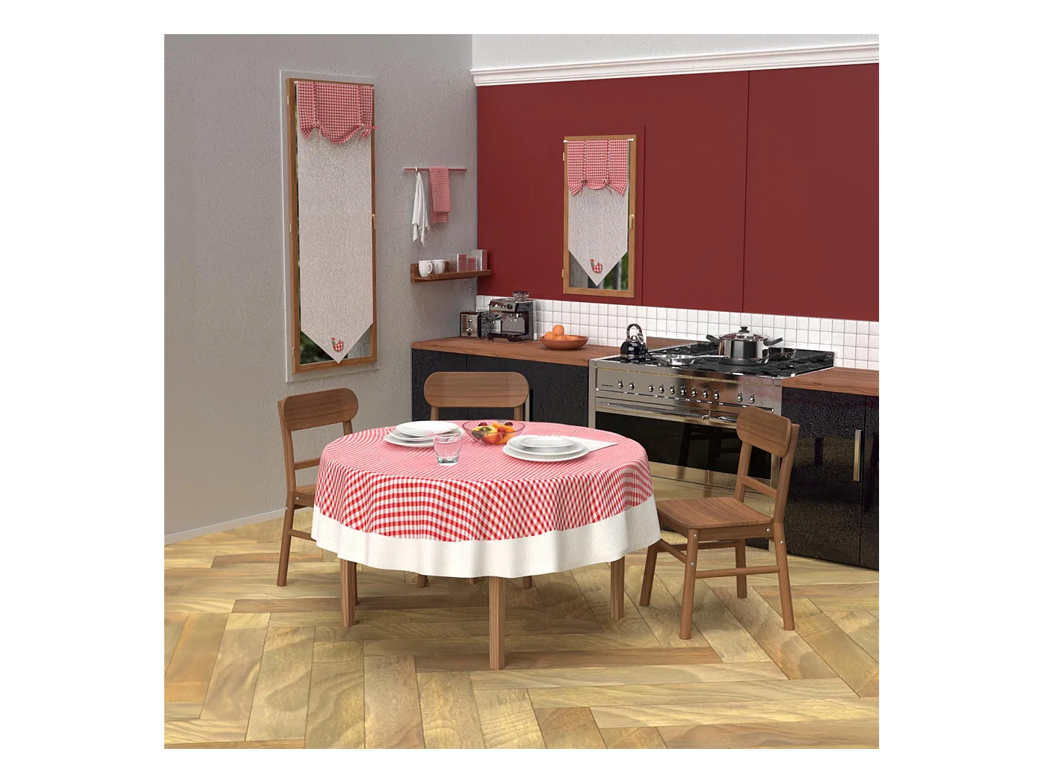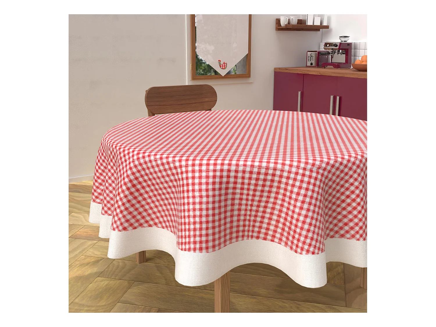 Mantel redondo antimanchas de algodón diámetro 160 cm rojo VICHY, de Soleil d'Ocre
