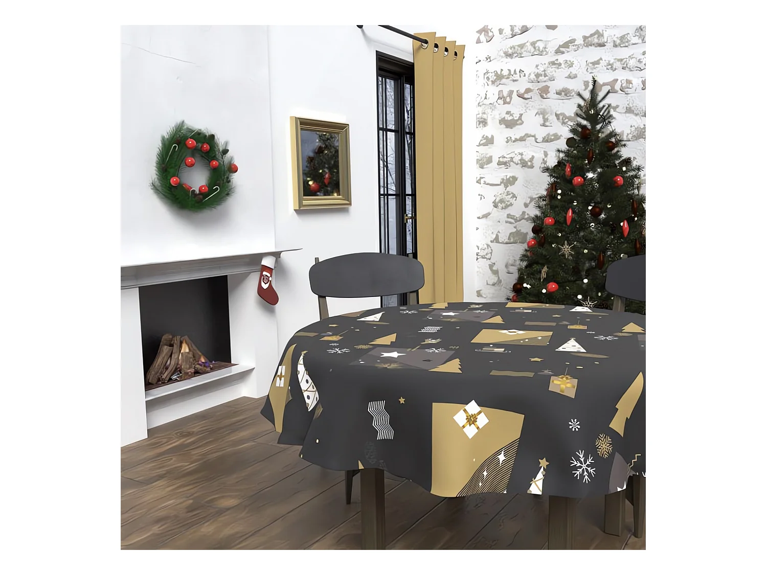 Mantel antimanchas redondo 180 cm ALIX negro, de Soleil d'Ocre