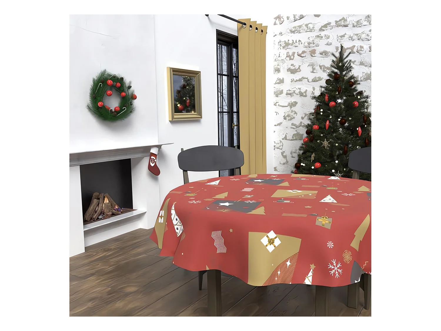 Mantel redondo antimanchas diámetro 180 cm FIR rojo, de Soleil d'Ocre