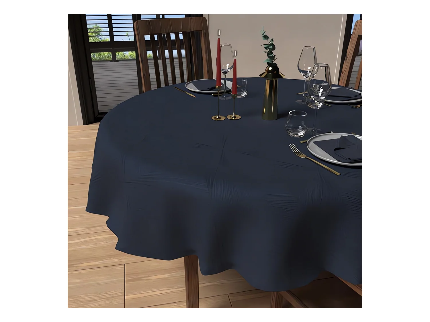 Mantel redondo antimanchas diámetro 180 cm LUXURY midnight blue, de Soleil d'Ocre