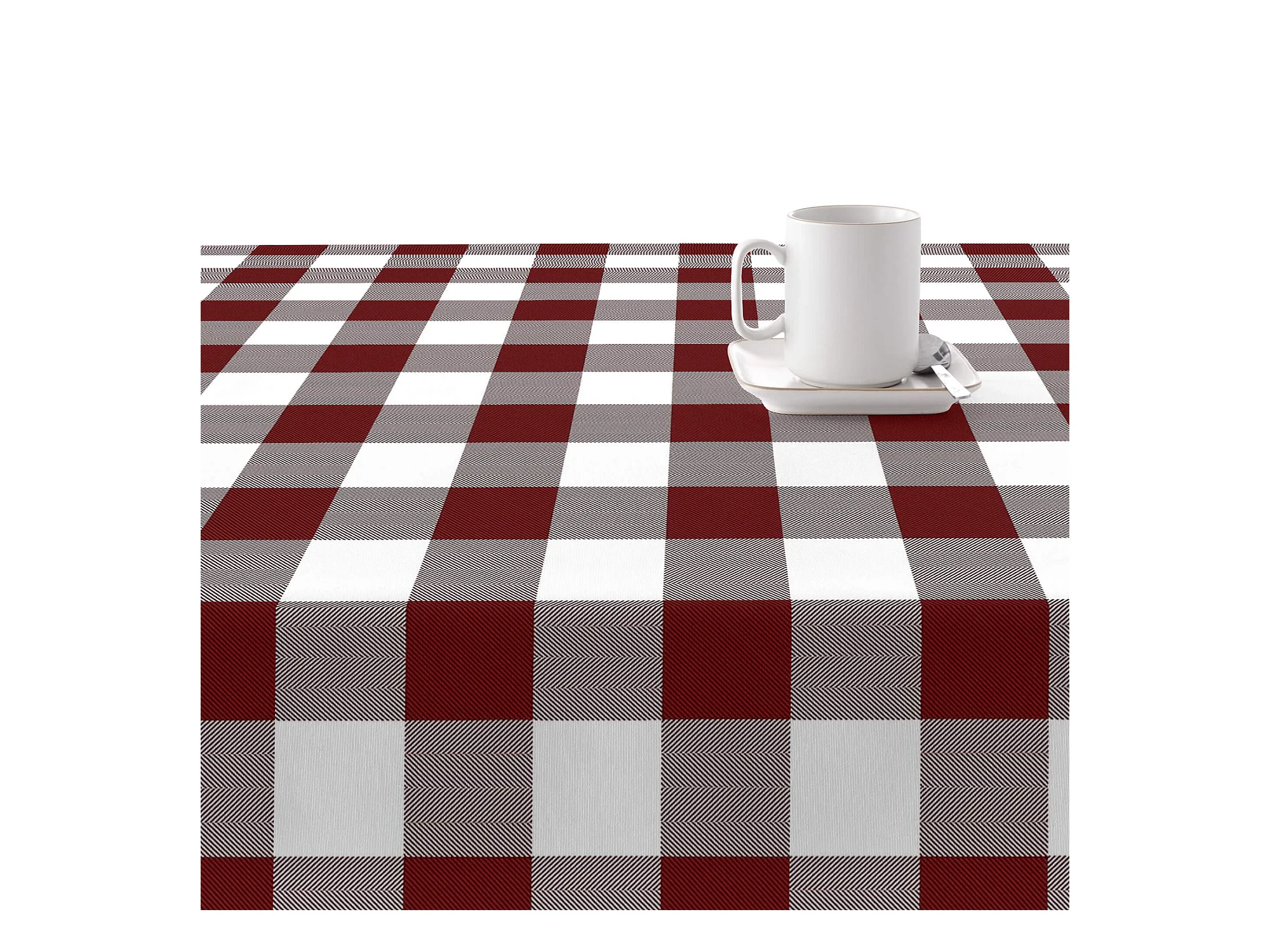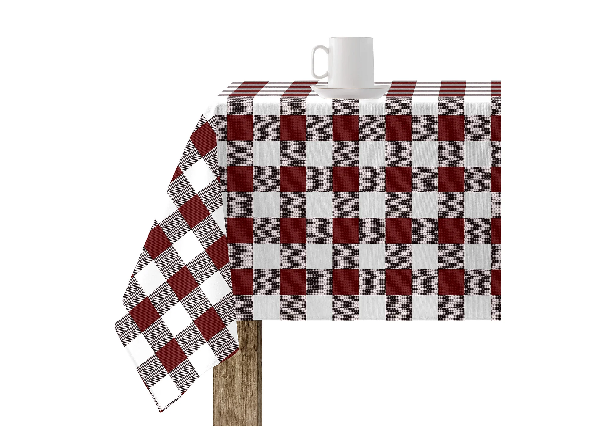 Mantel resinado antimanchas Cuadros Granate - 140x140 cm
