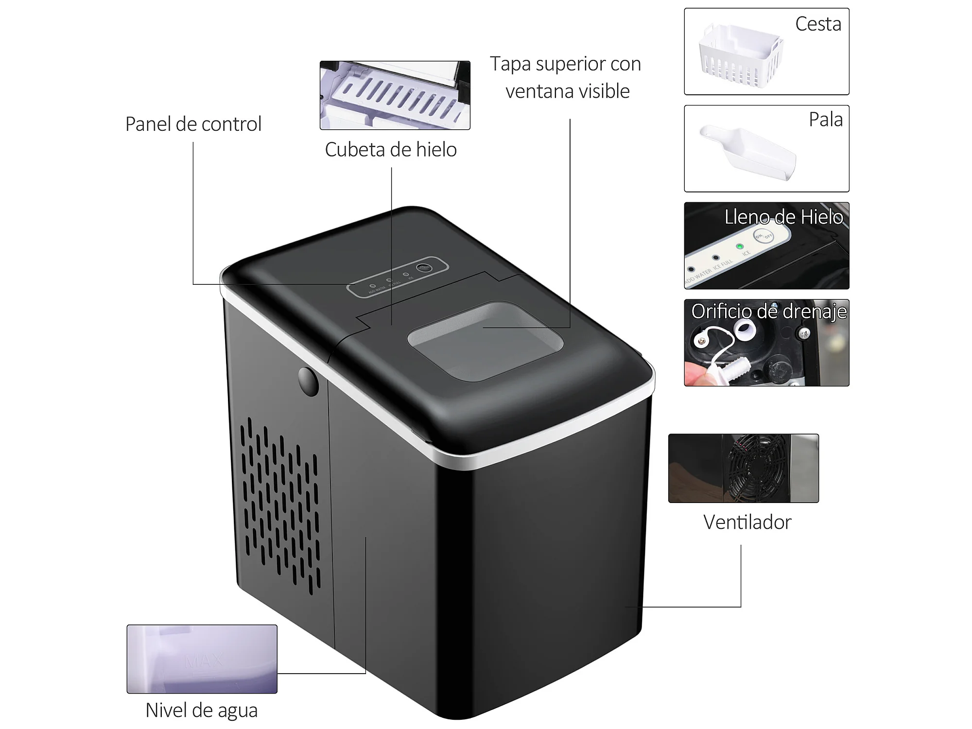 Máquina de hielo negro 22.2x29.4x29 cm HOMCOM