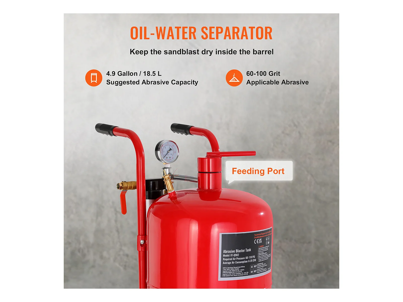 Máquina Pulidora de Arena de 10 galones SucceBuy, Pulidora de Arena Neumática Portátil, Abrasivo para Medios, 60-110 PSI