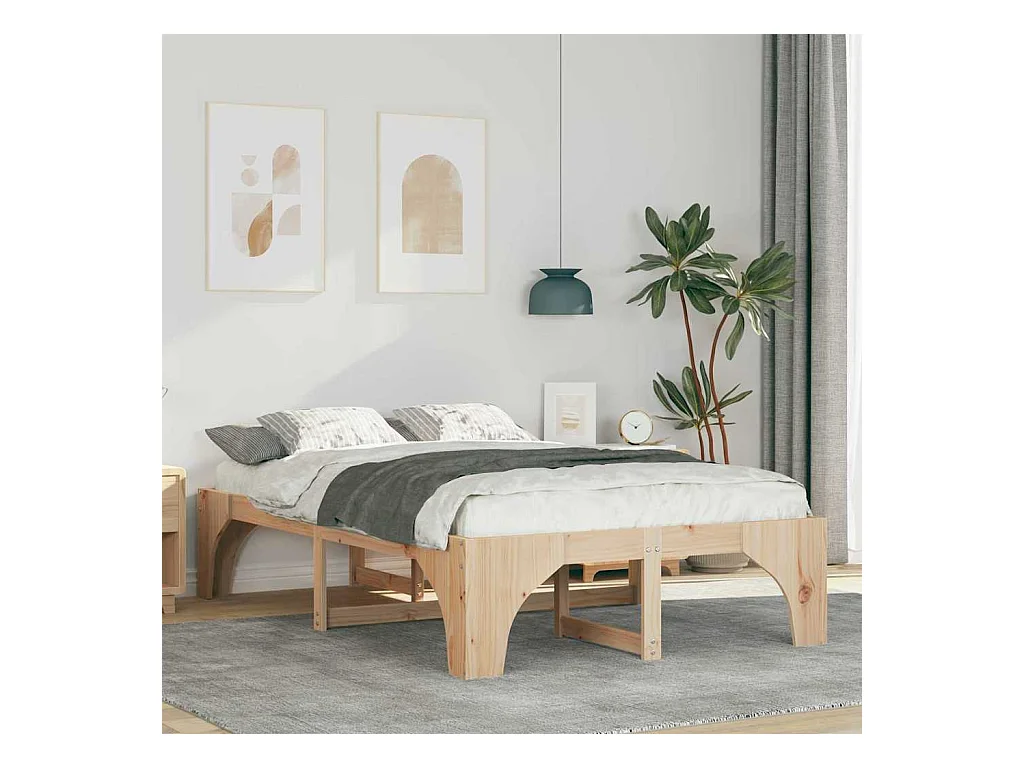 Estructura de cama de pino macizo 140 x 190 cm Madera de pino macizo