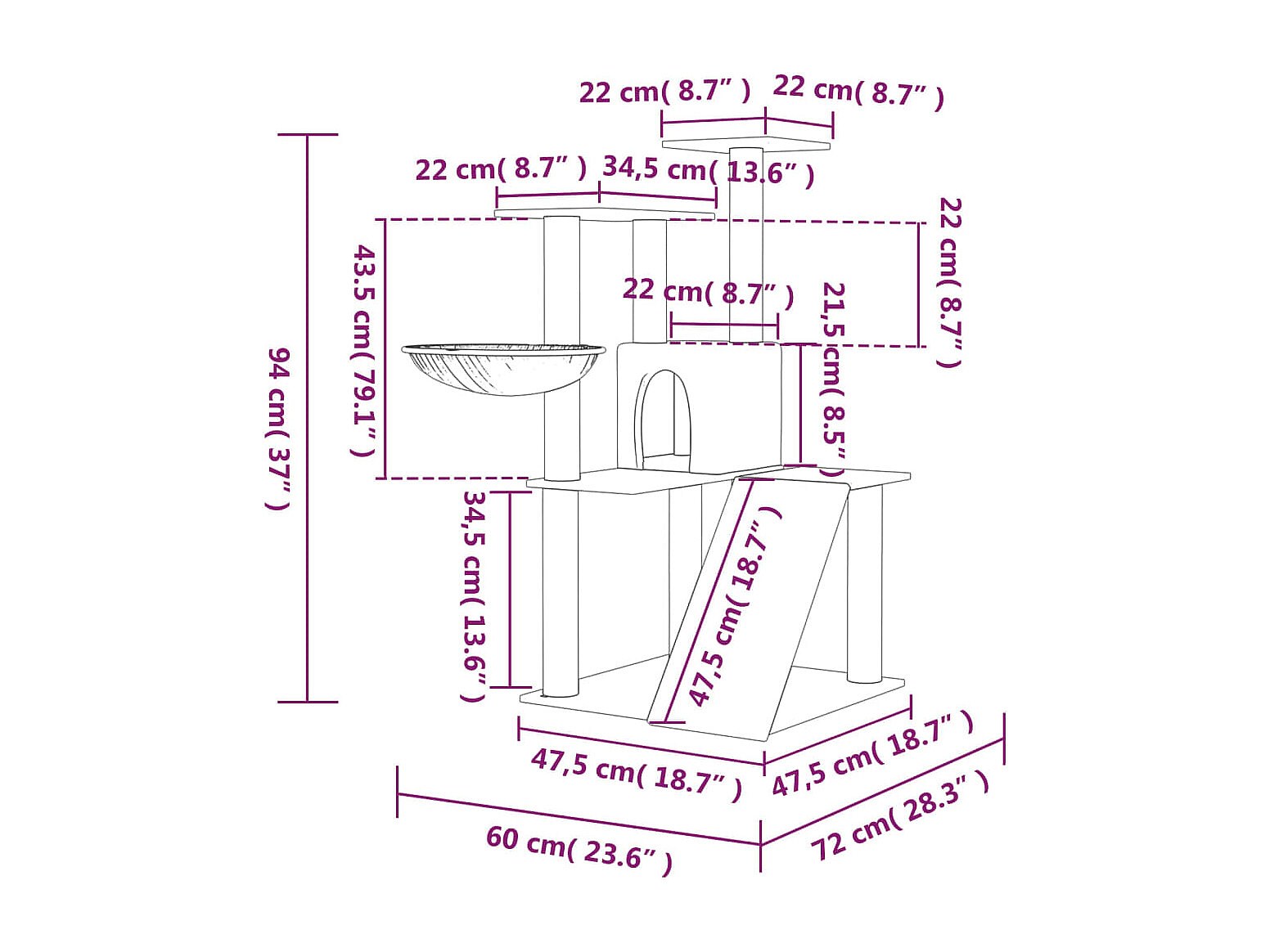 Key West Rascador para gatos con postes de sisal gris oscuro 216 cm