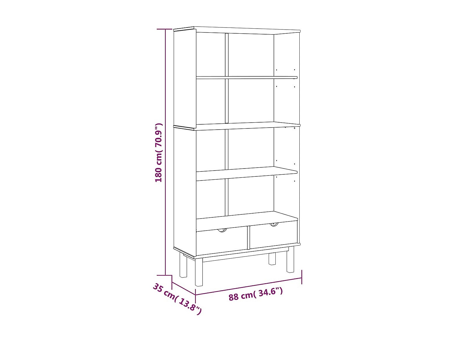 Marie-Louise Estantería con 2 cajones OTTA madera maciza de pino marrón