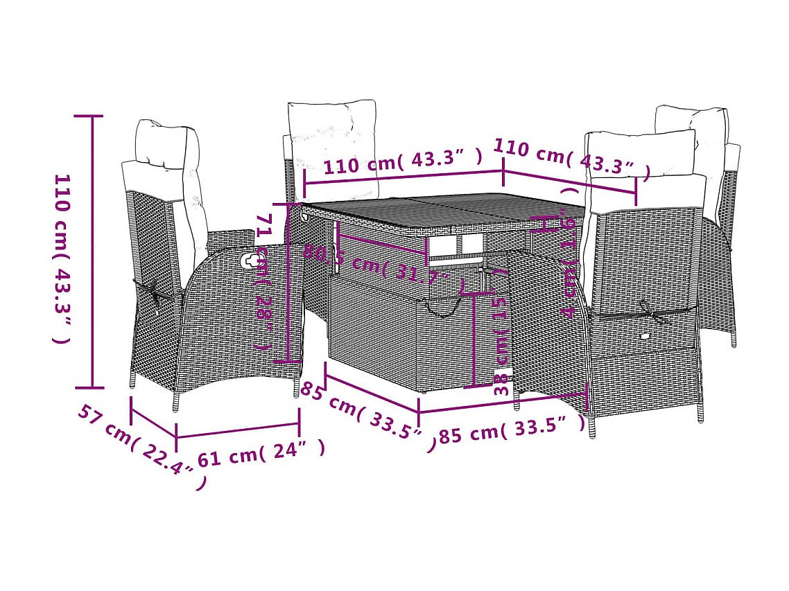 Marius Set de muebles jardín 5 pzas con cojines ratán sintético negro