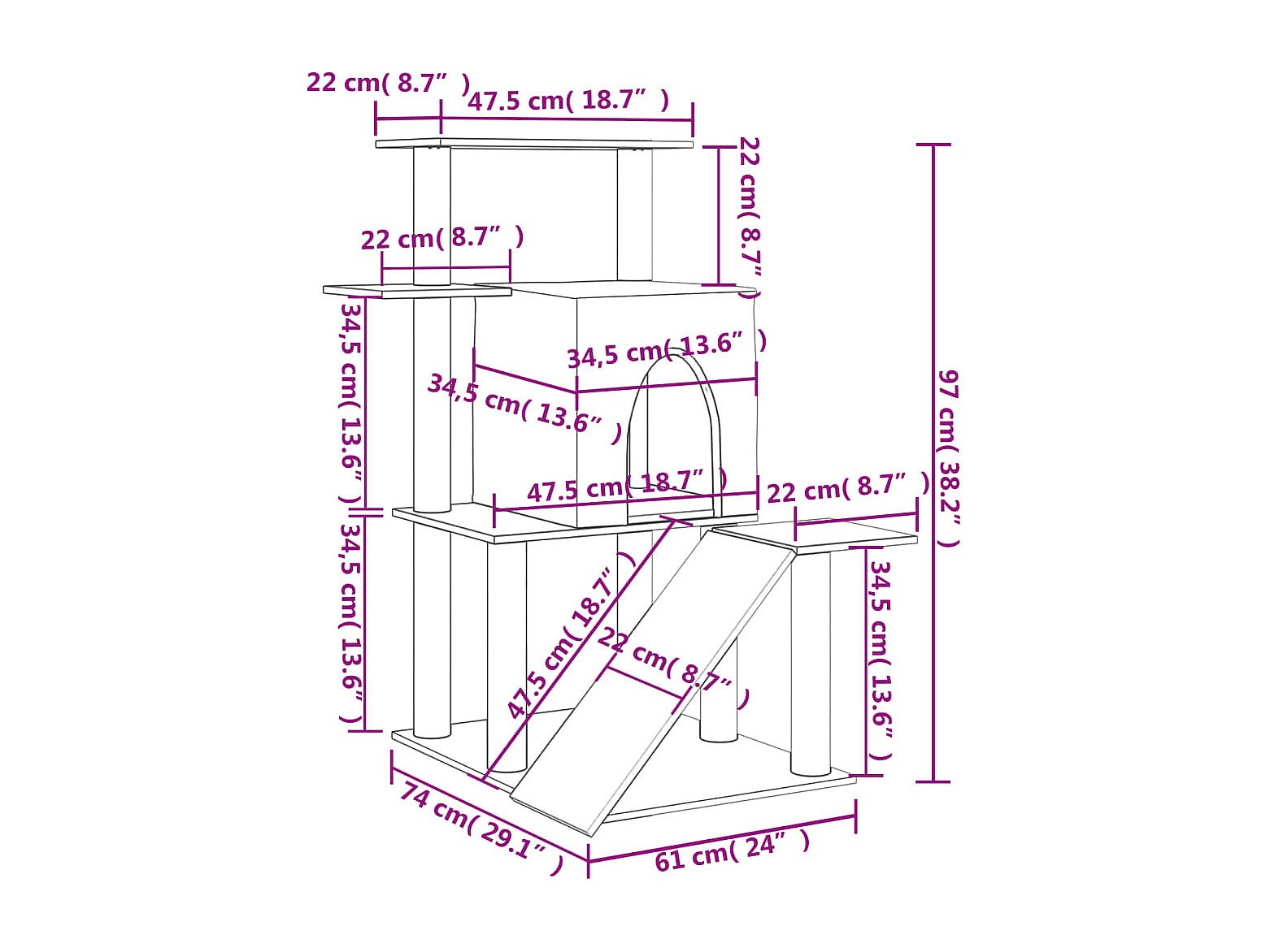 Rascador para gatos con postes de sisal gris oscuro 97 cm ES236559