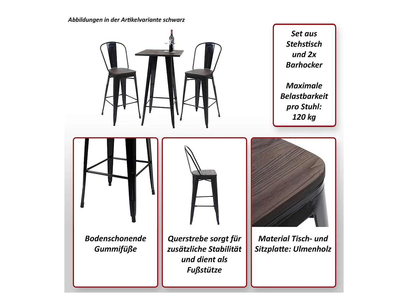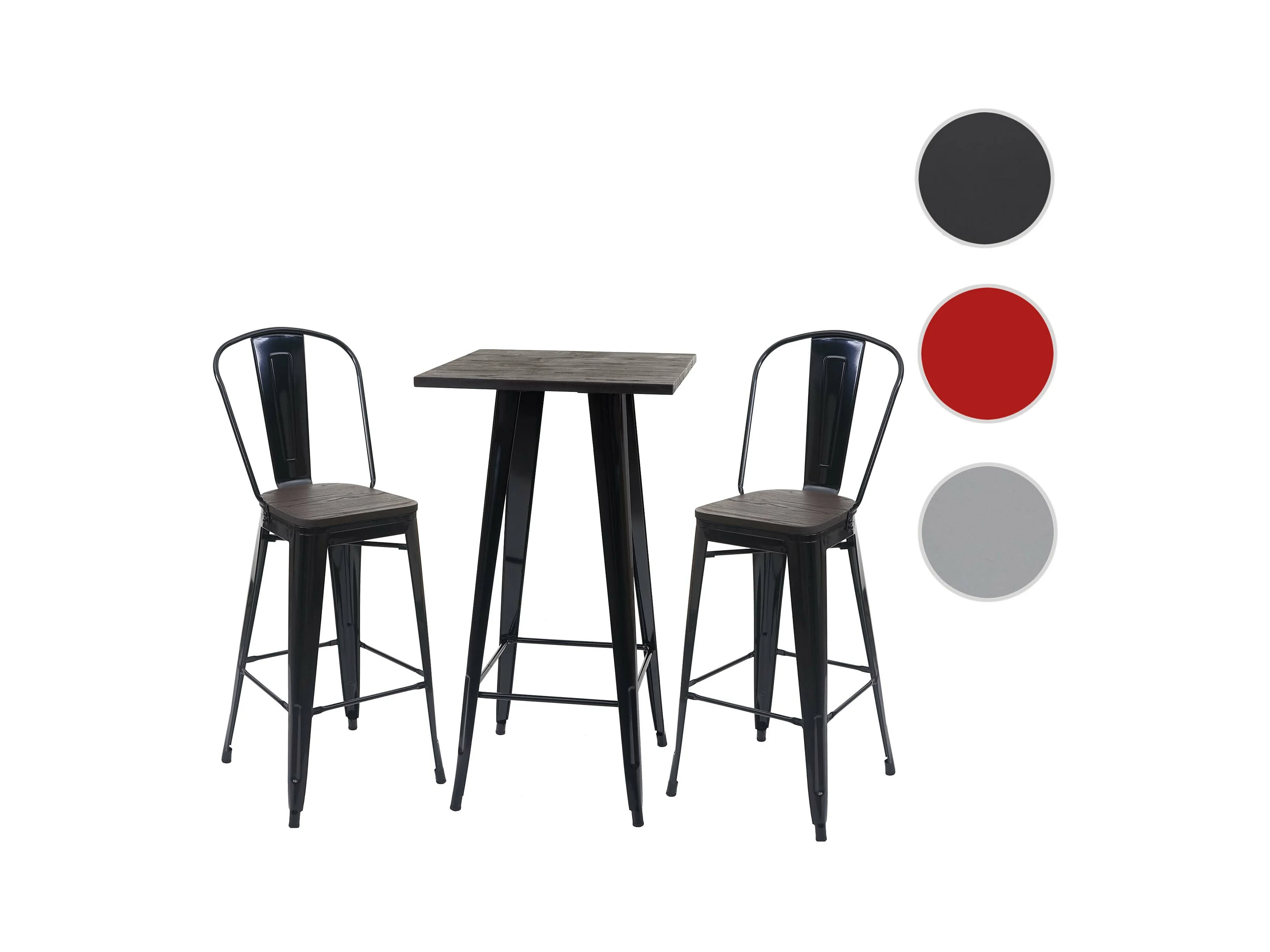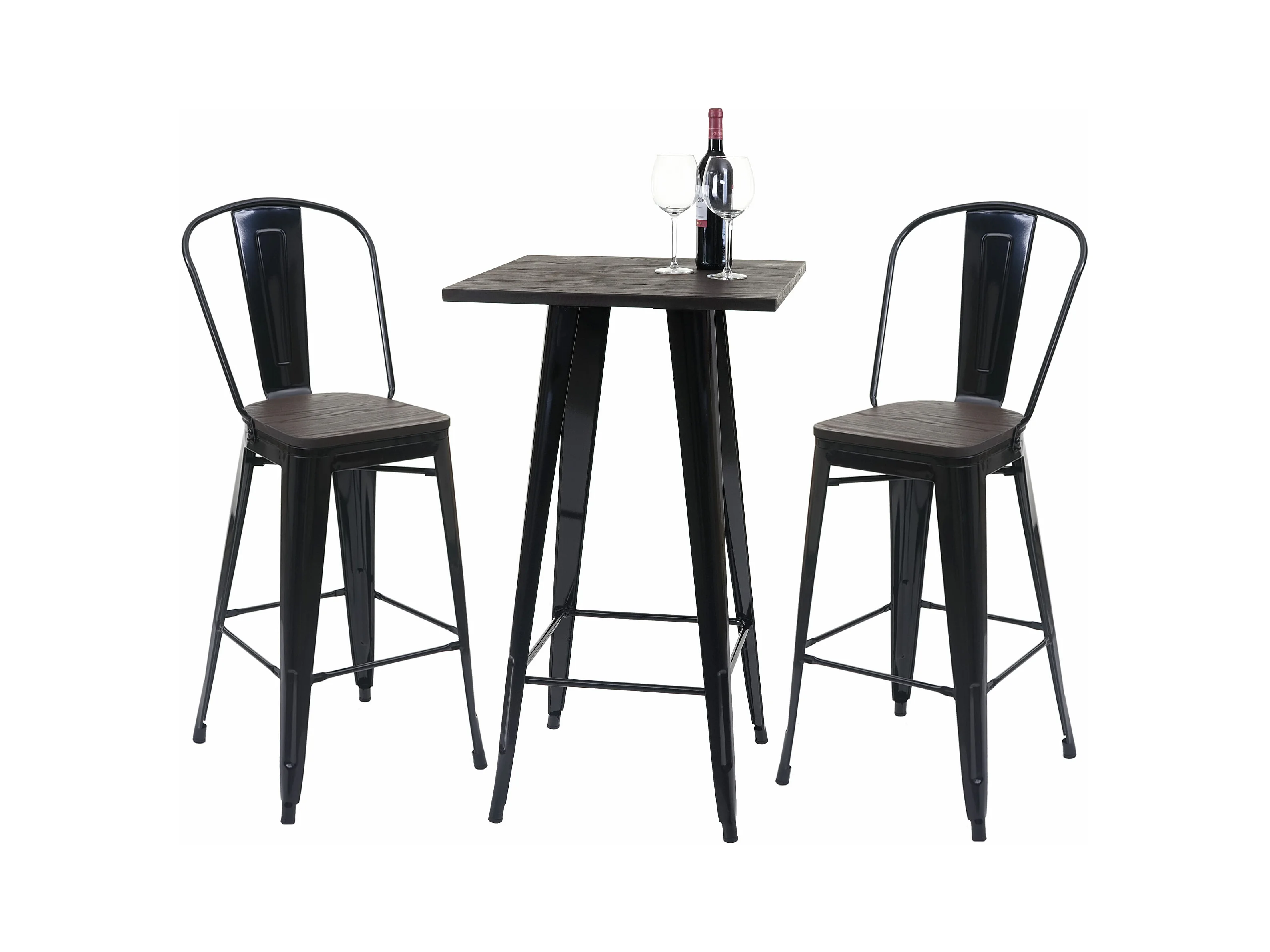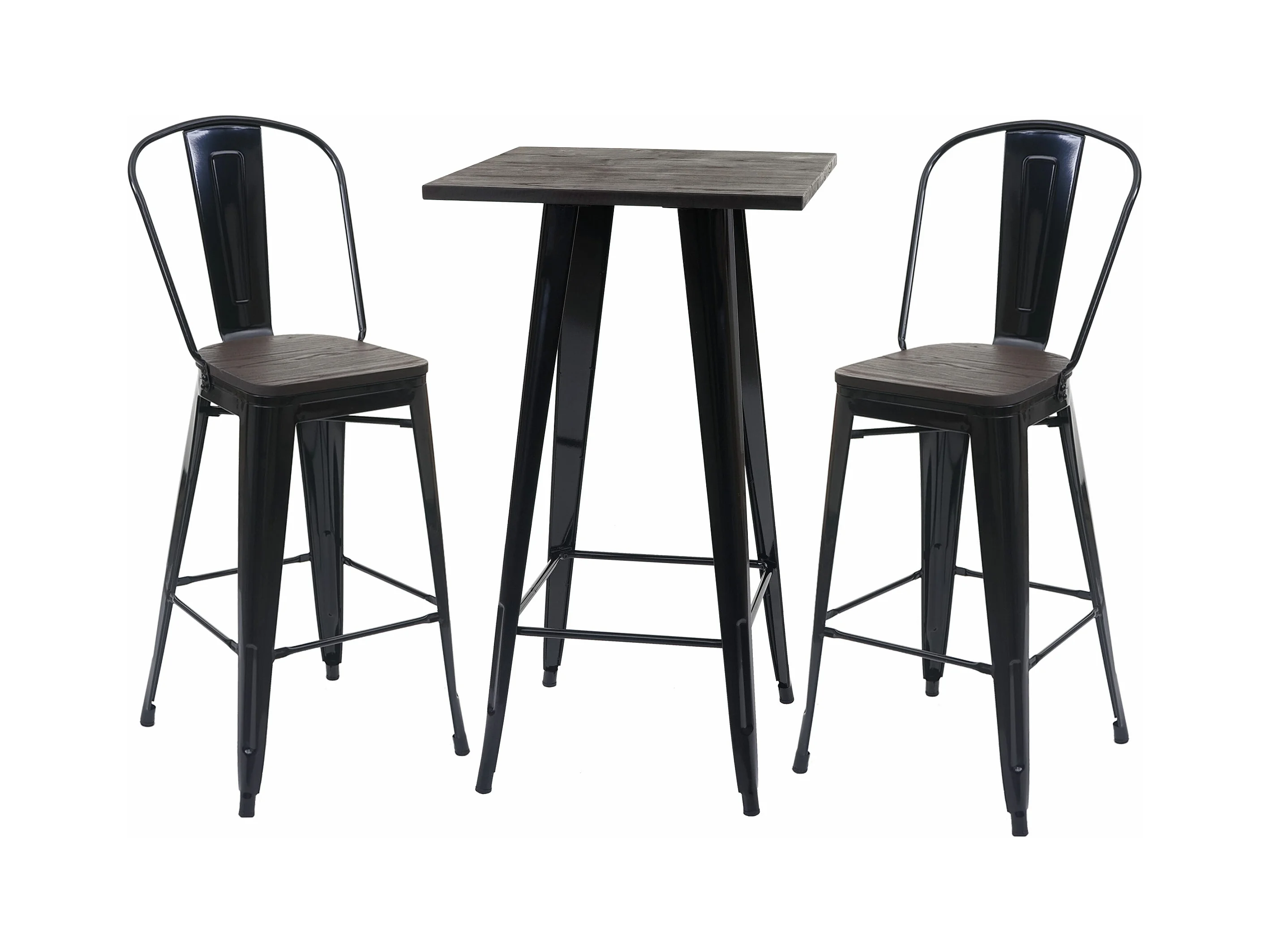 MCW-A73 Juego de mesa de bar de metal (3 piezas), negro