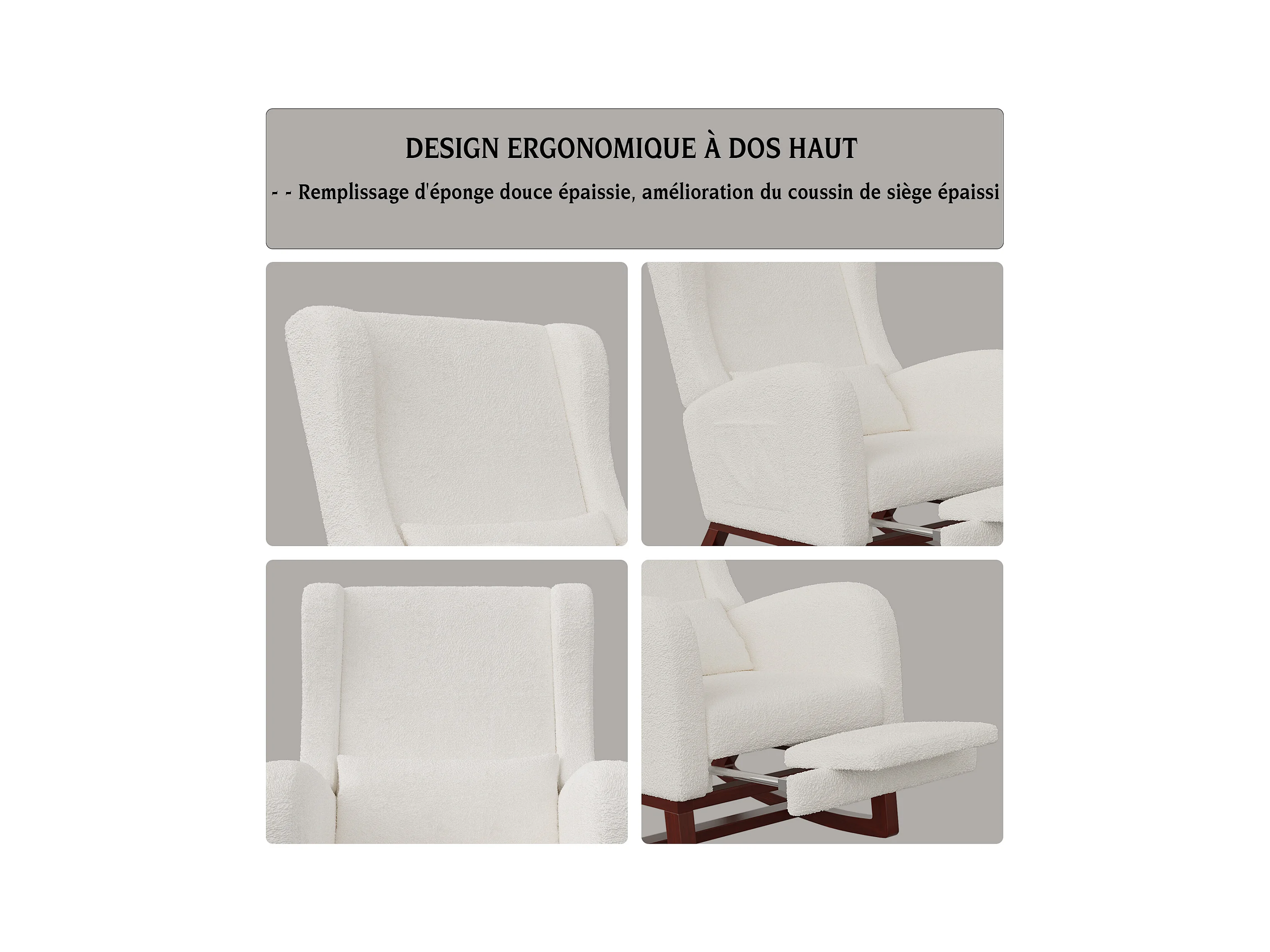 Mecedora blanca de peluche con soporte lumbar, diseño moderno y acogedor para salón o dormitorio