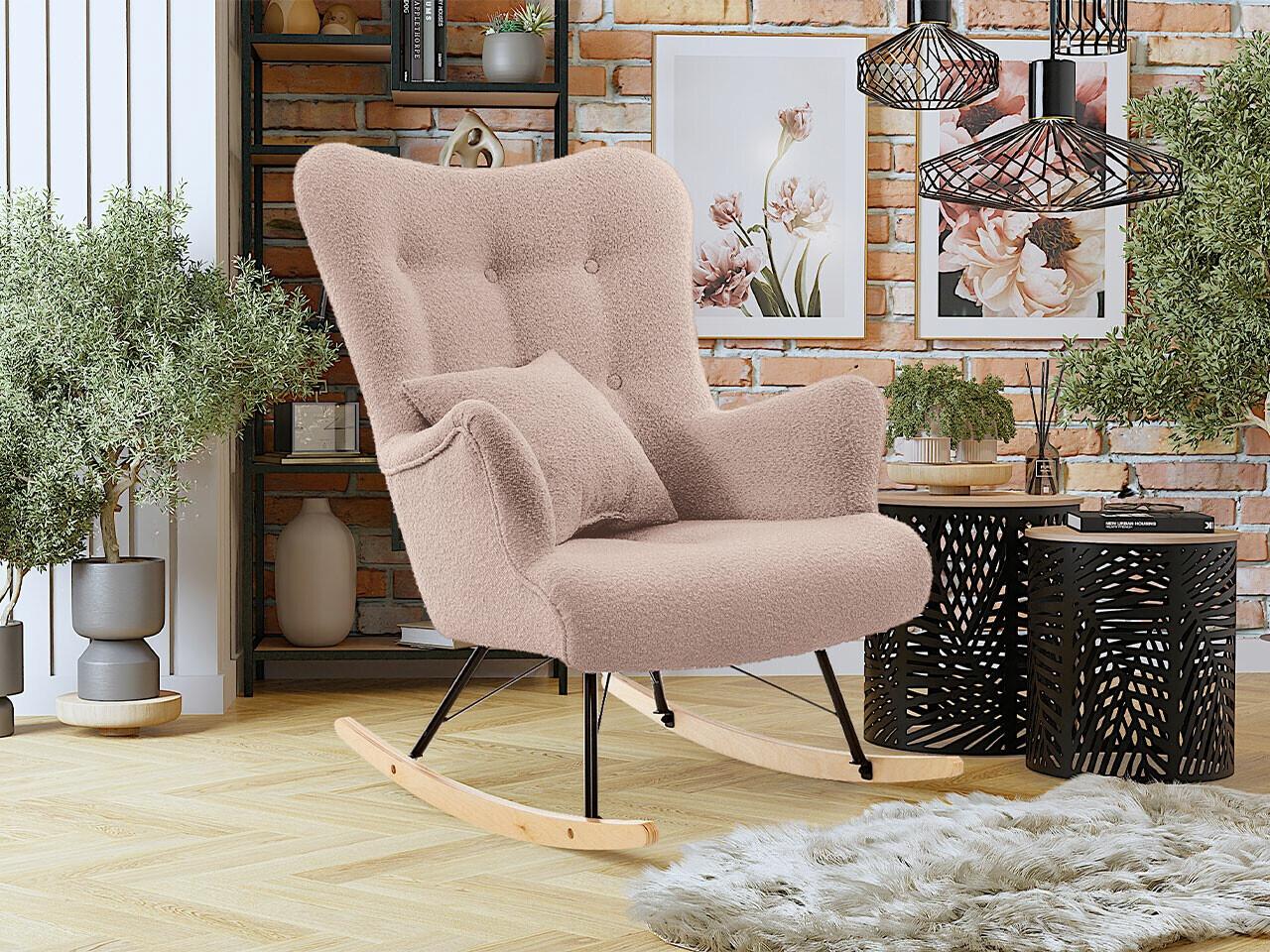Mecedora con estructura de acero y madera imitación lana de cordero, color rosa (71x98x101cm)