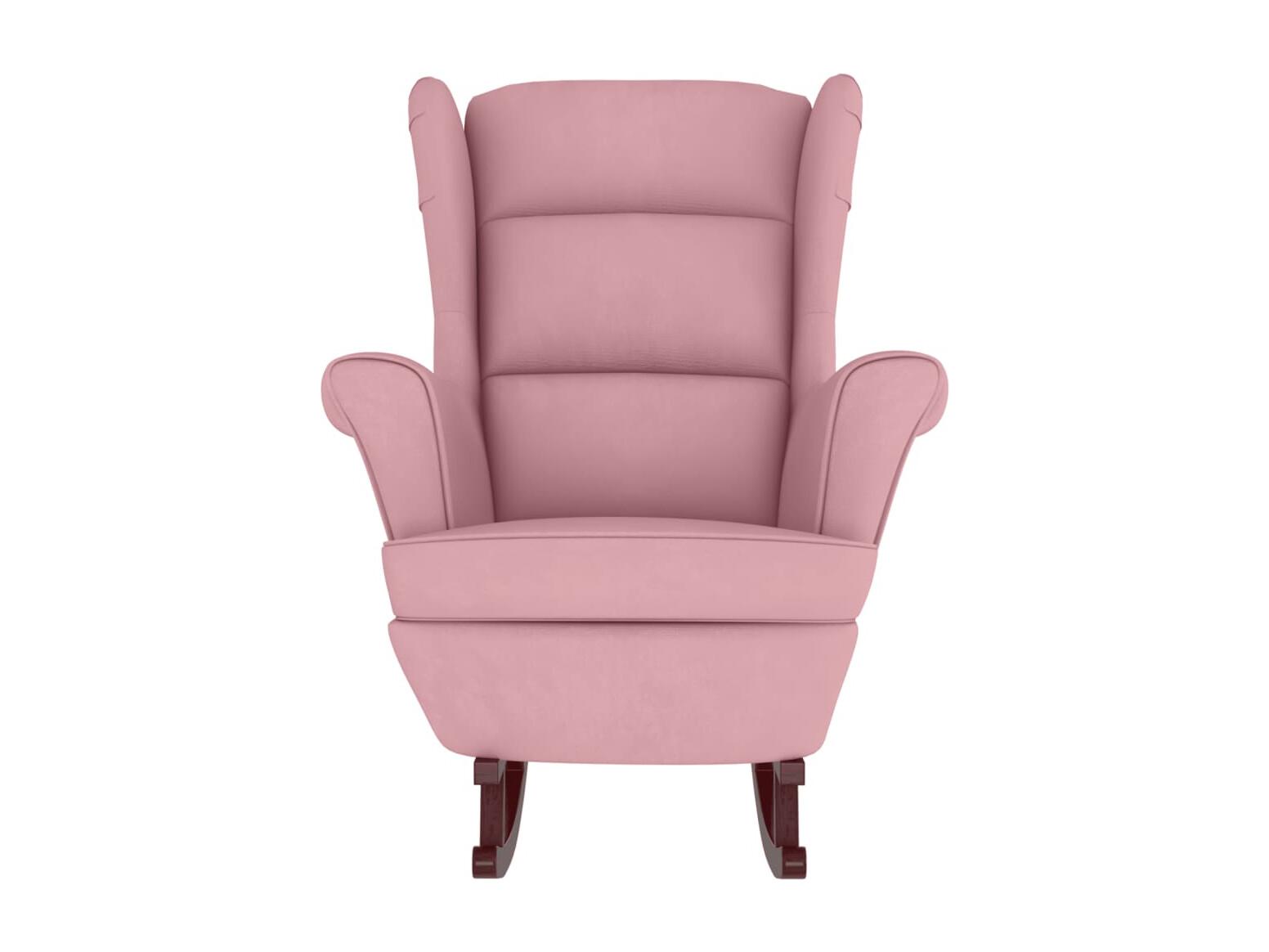 Mecedora con patas de madera maciza de caucho en terciopelo rosa