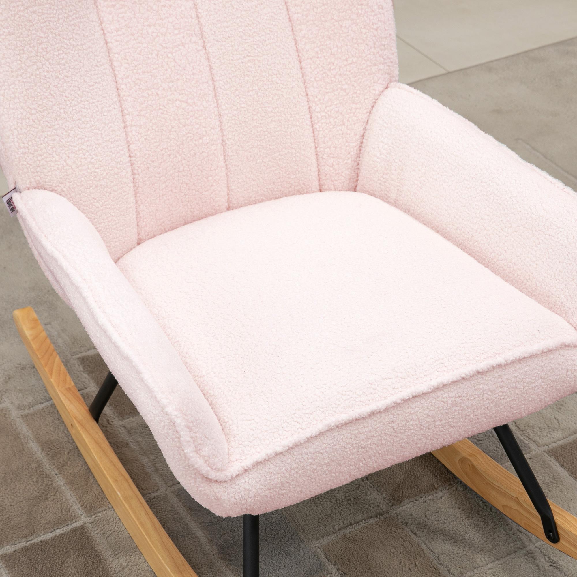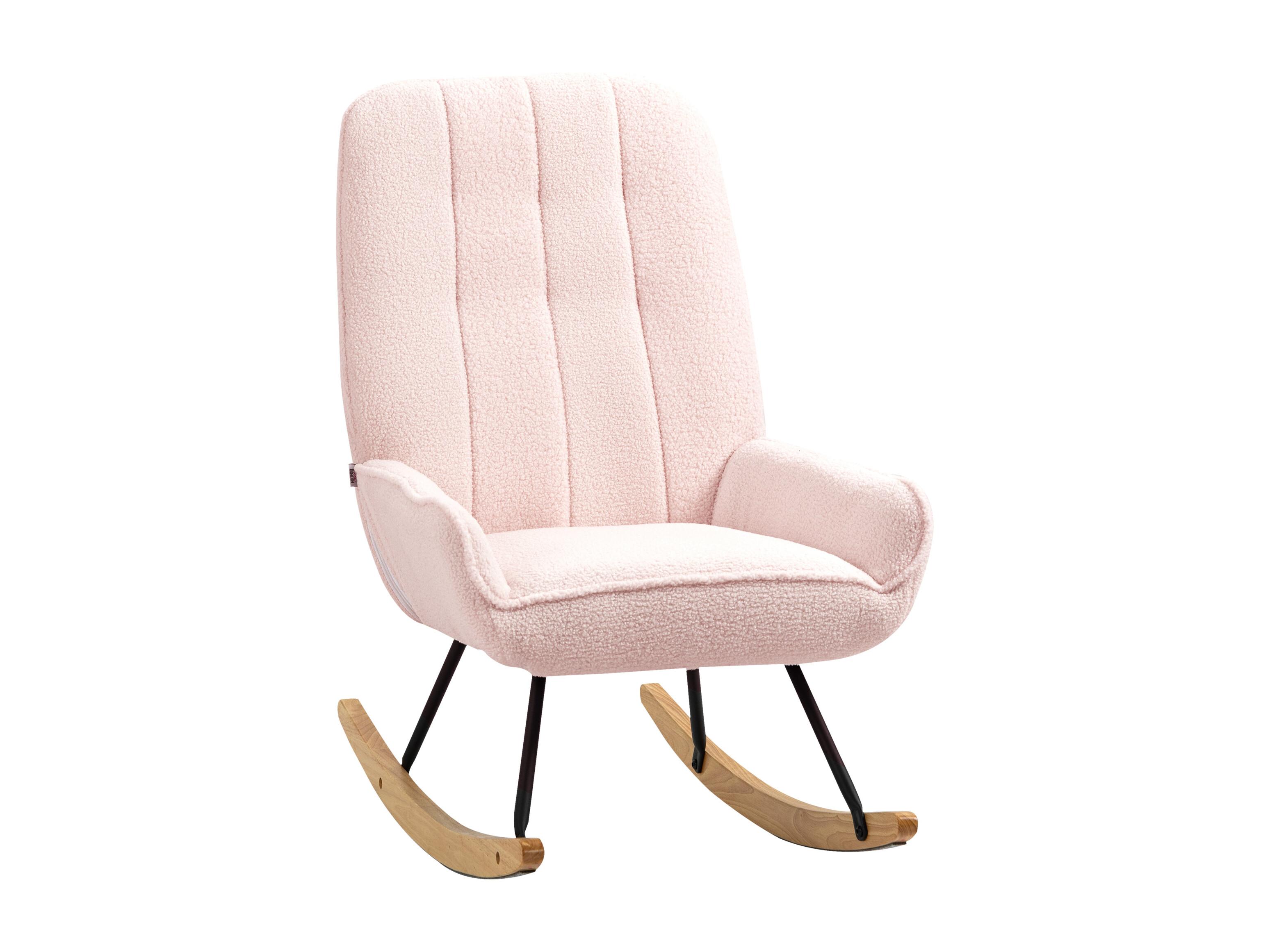 Silla mecedora con patas de madera de caucho terciopelo rosa ES159840