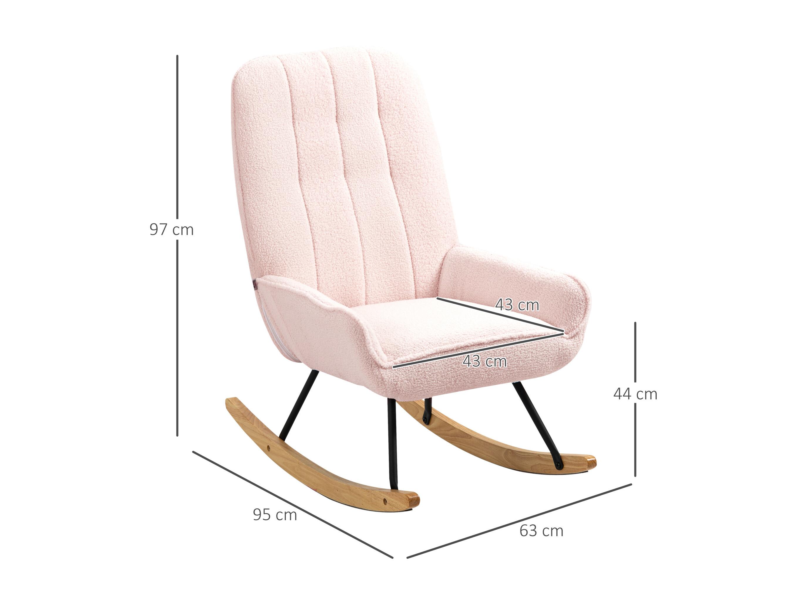 Mecedora con estructura de acero y madera imitación lana de cordero, color rosa (71x98x101cm)