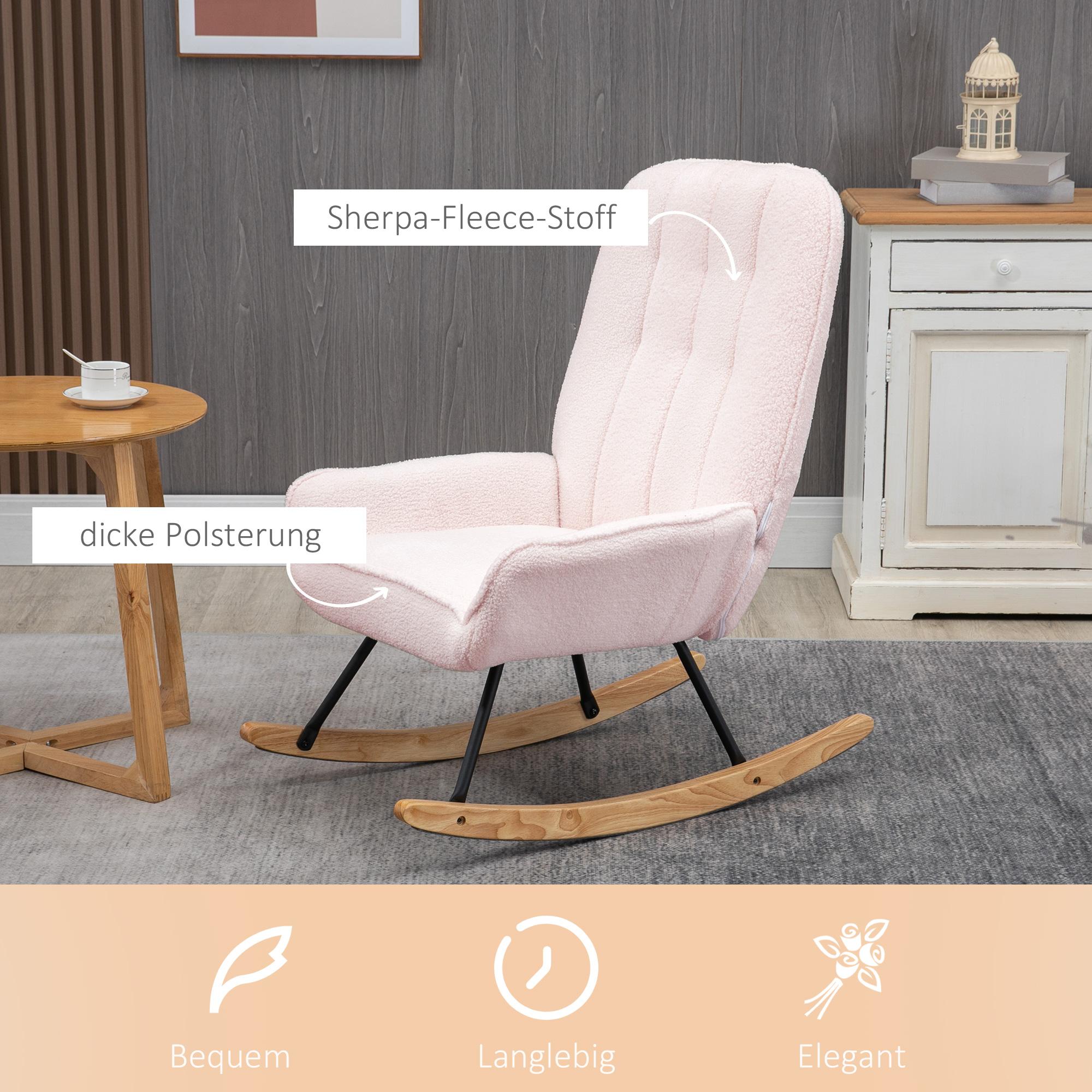 Mecedora con reposabrazos y cojines, tejido Sherpa rosa, soporta hasta 150 kg (63x95x97 cm)