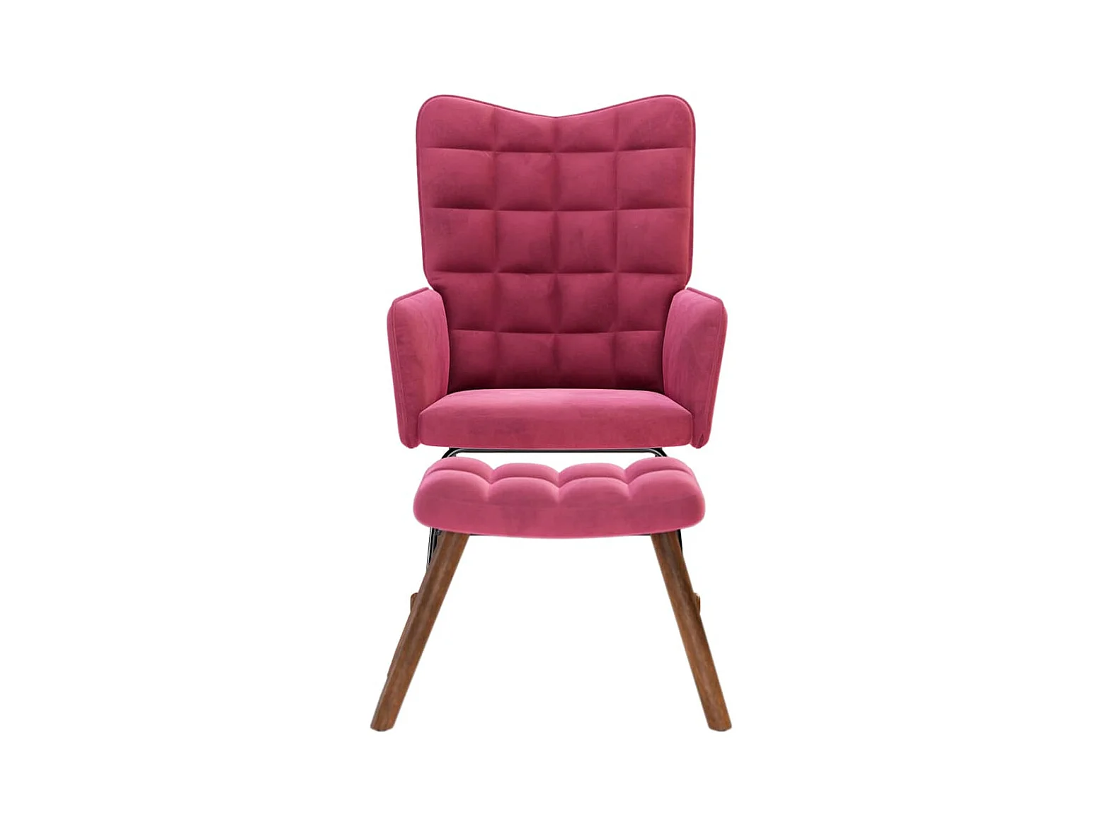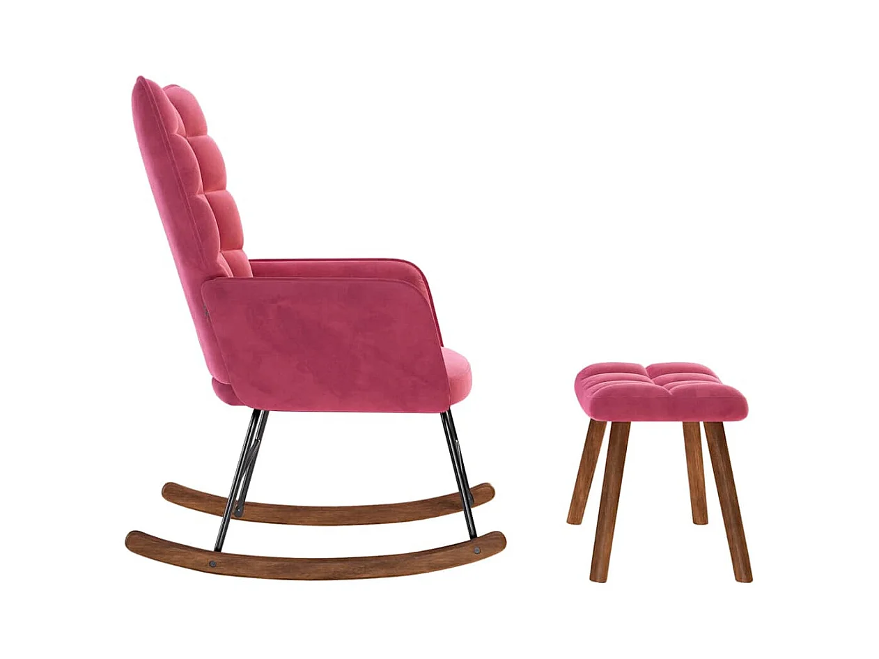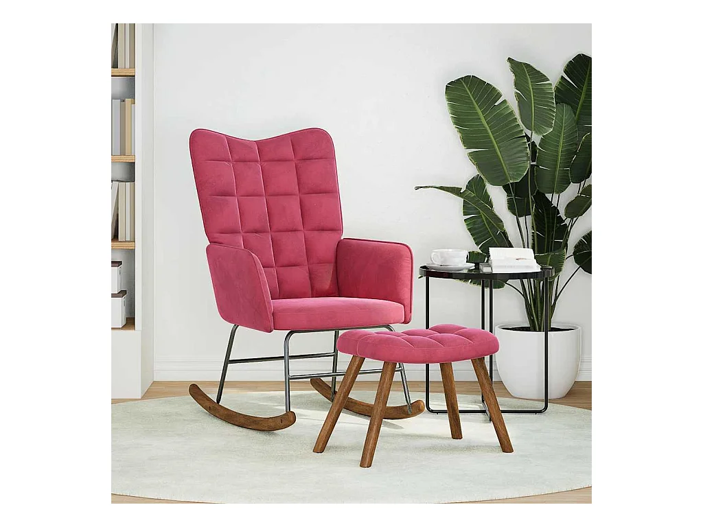 Mecedora con reposapiés en terciopelo rojo burdeos