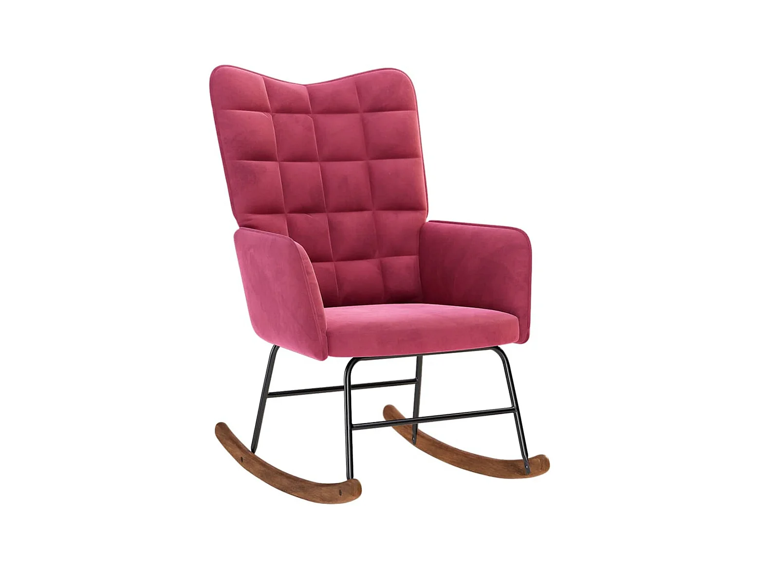 Mecedora patas madera caucho Terciopelo rojo burdeos