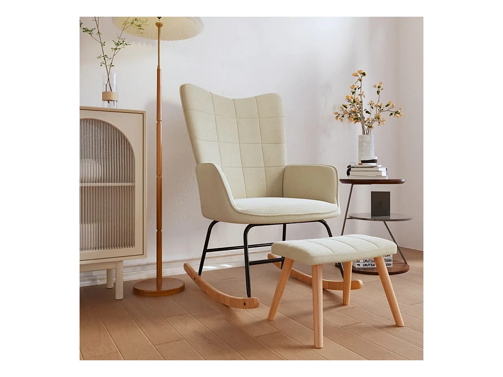 Mecedora con taburete Tela Crema