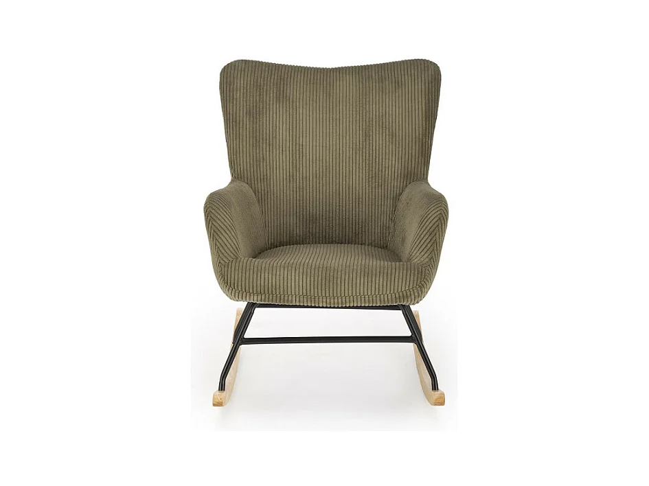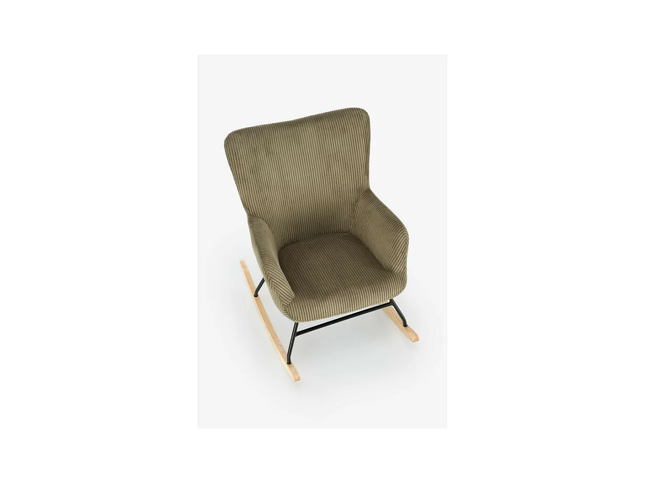 Mecedora de diseño Primrose con reposabrazos de pana verde oliva