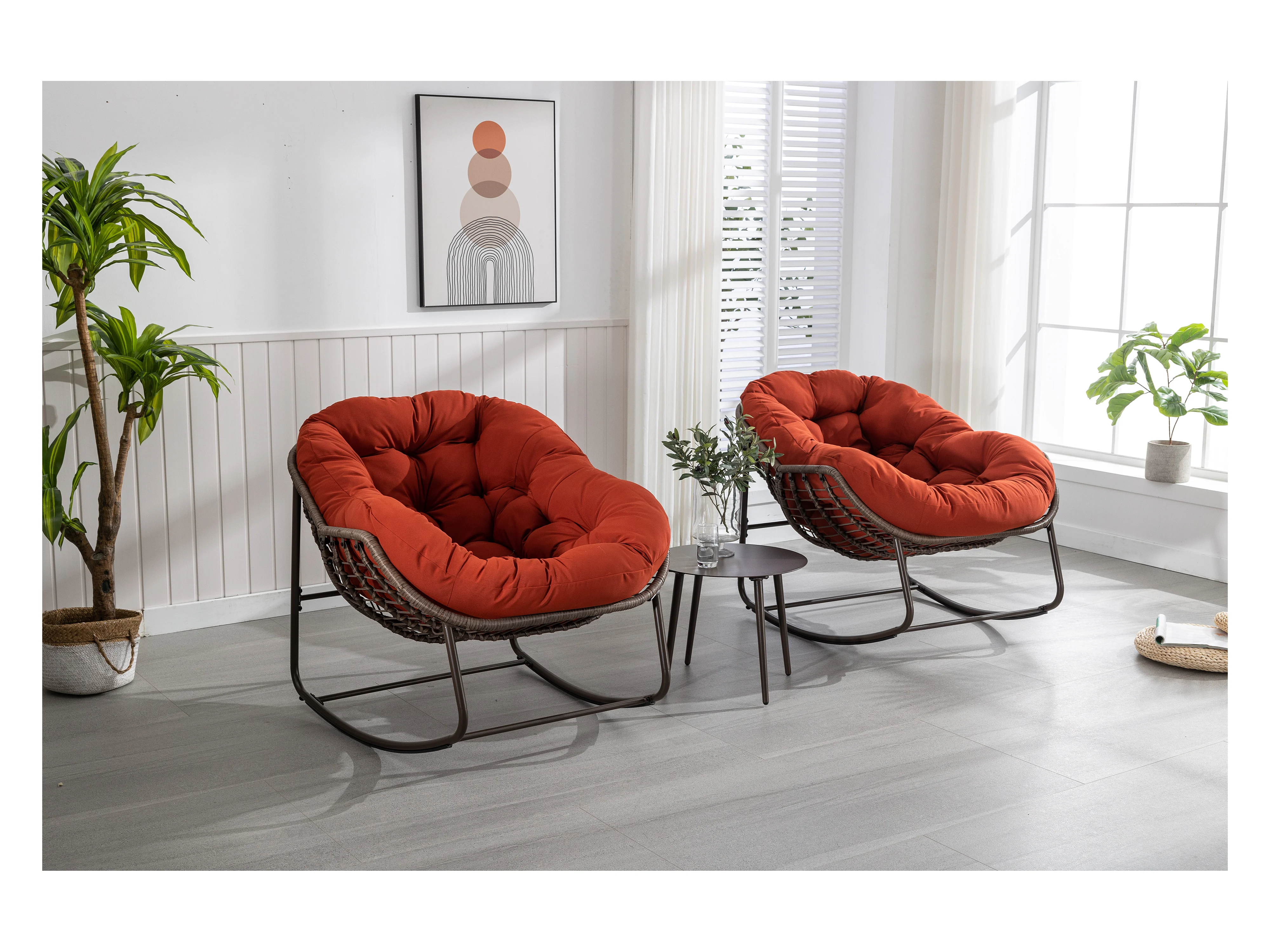 Mecedora de ratán XXL, cómoda silla de salón con cojín grueso y estructura de acero, color naranja (99 x 76 x 25 cm)