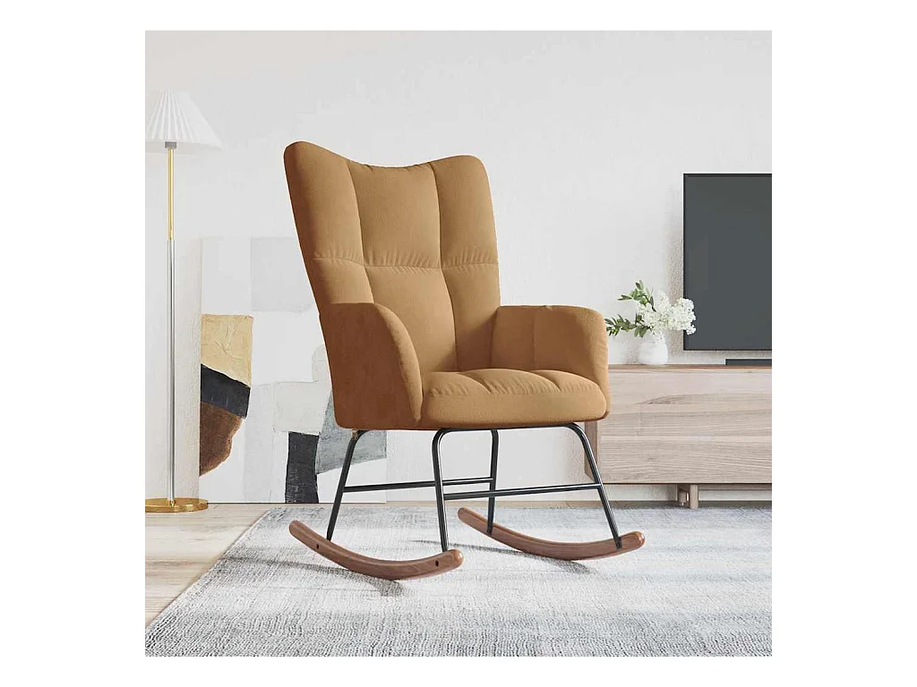 Mecedora con patas de madera maciza de caucho en terciopelo marrón
