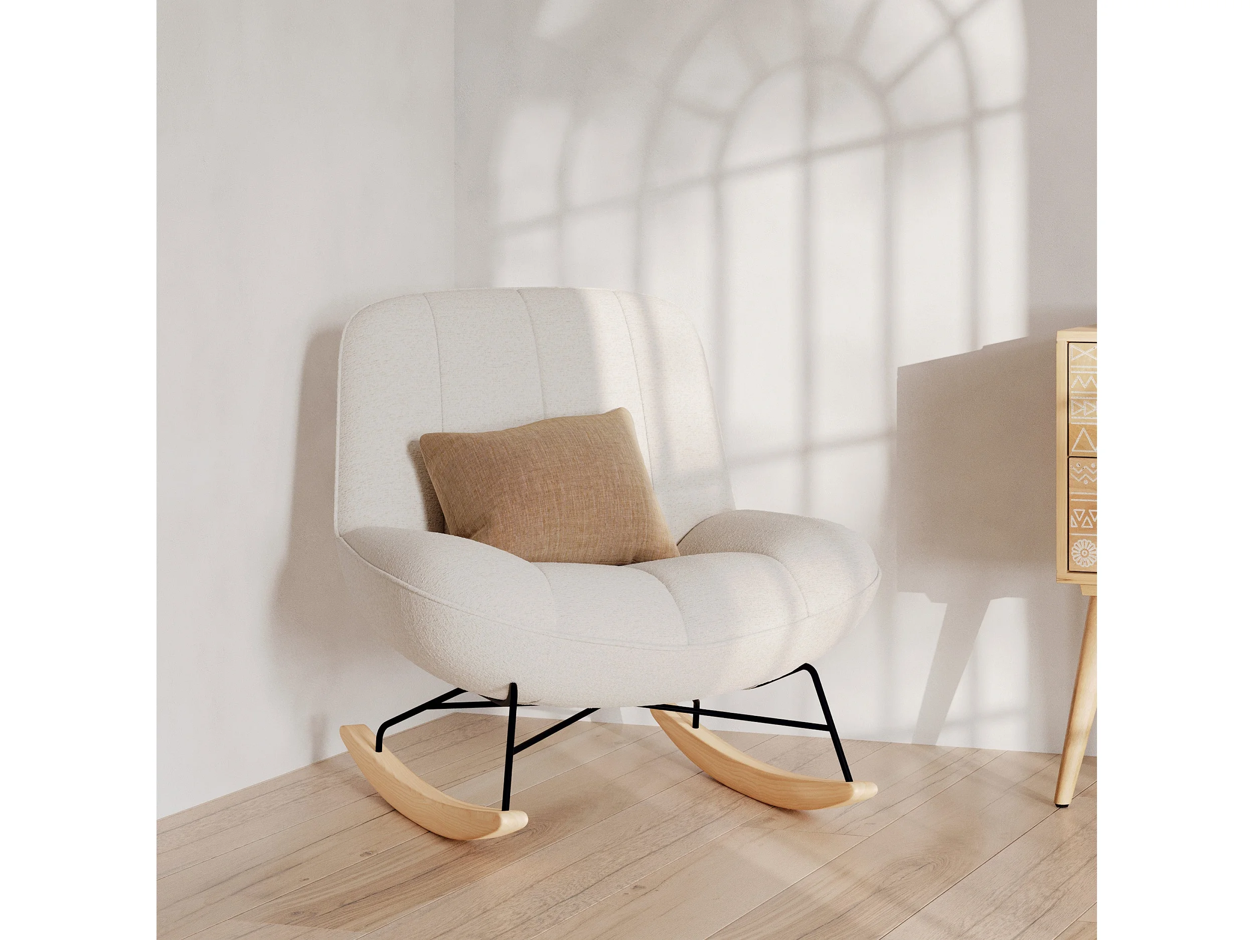 Mecedora en tejido bouclé blanco roto - Alvin