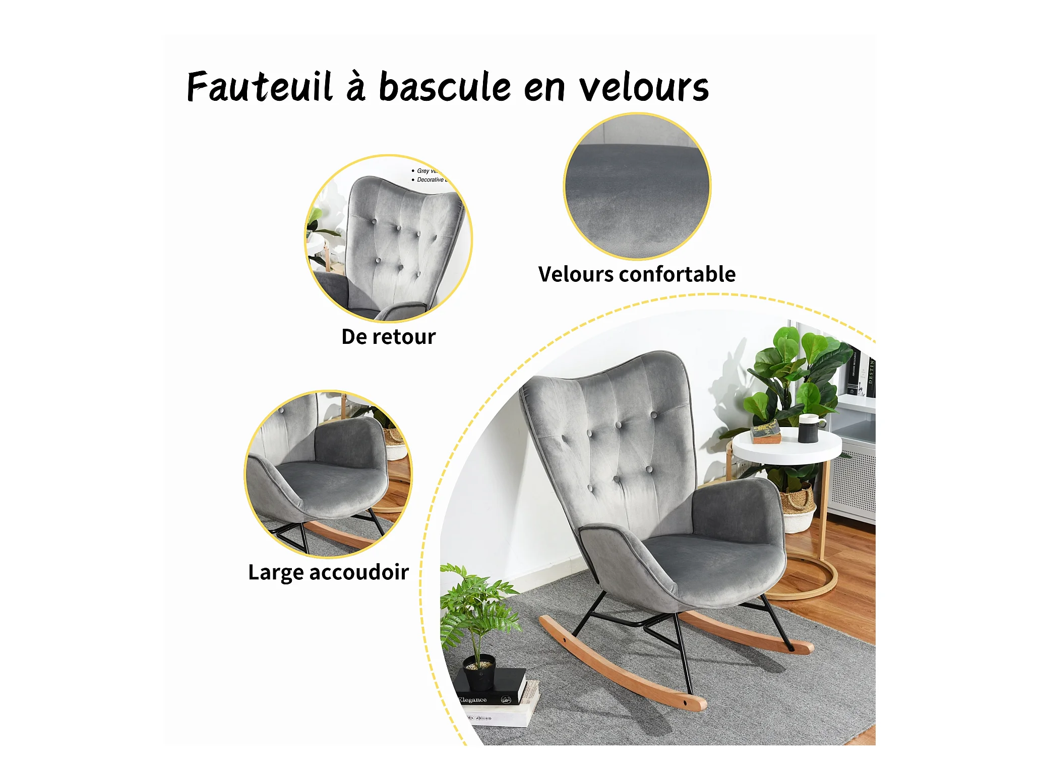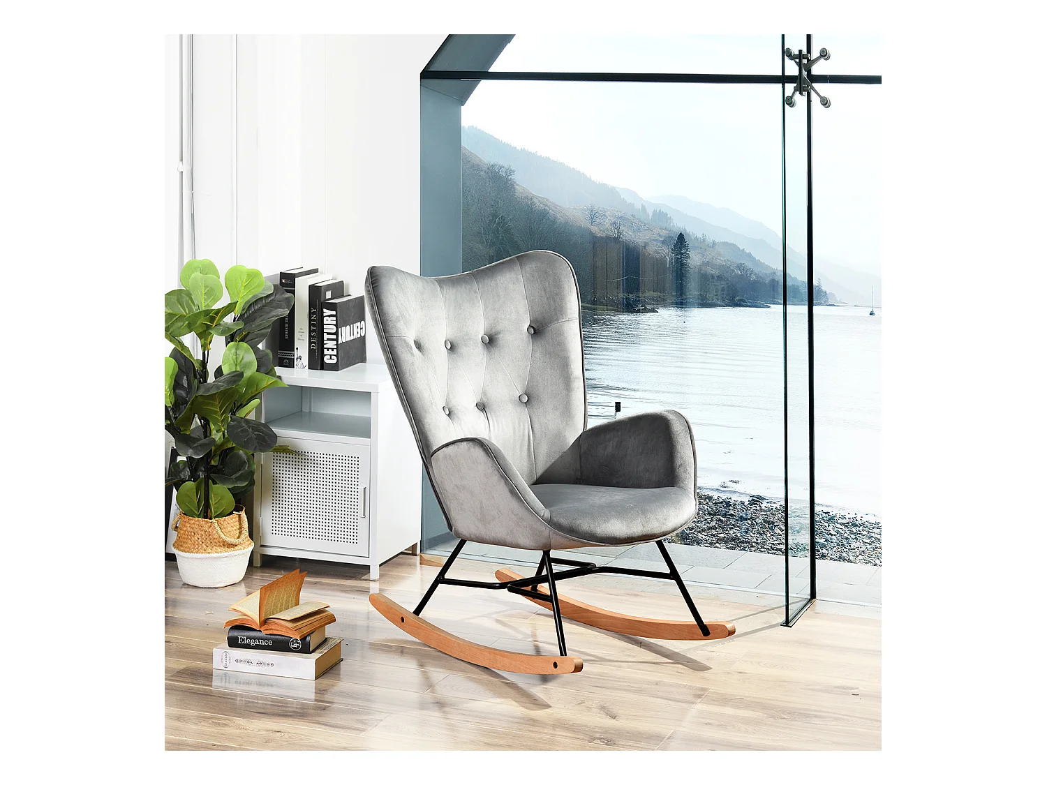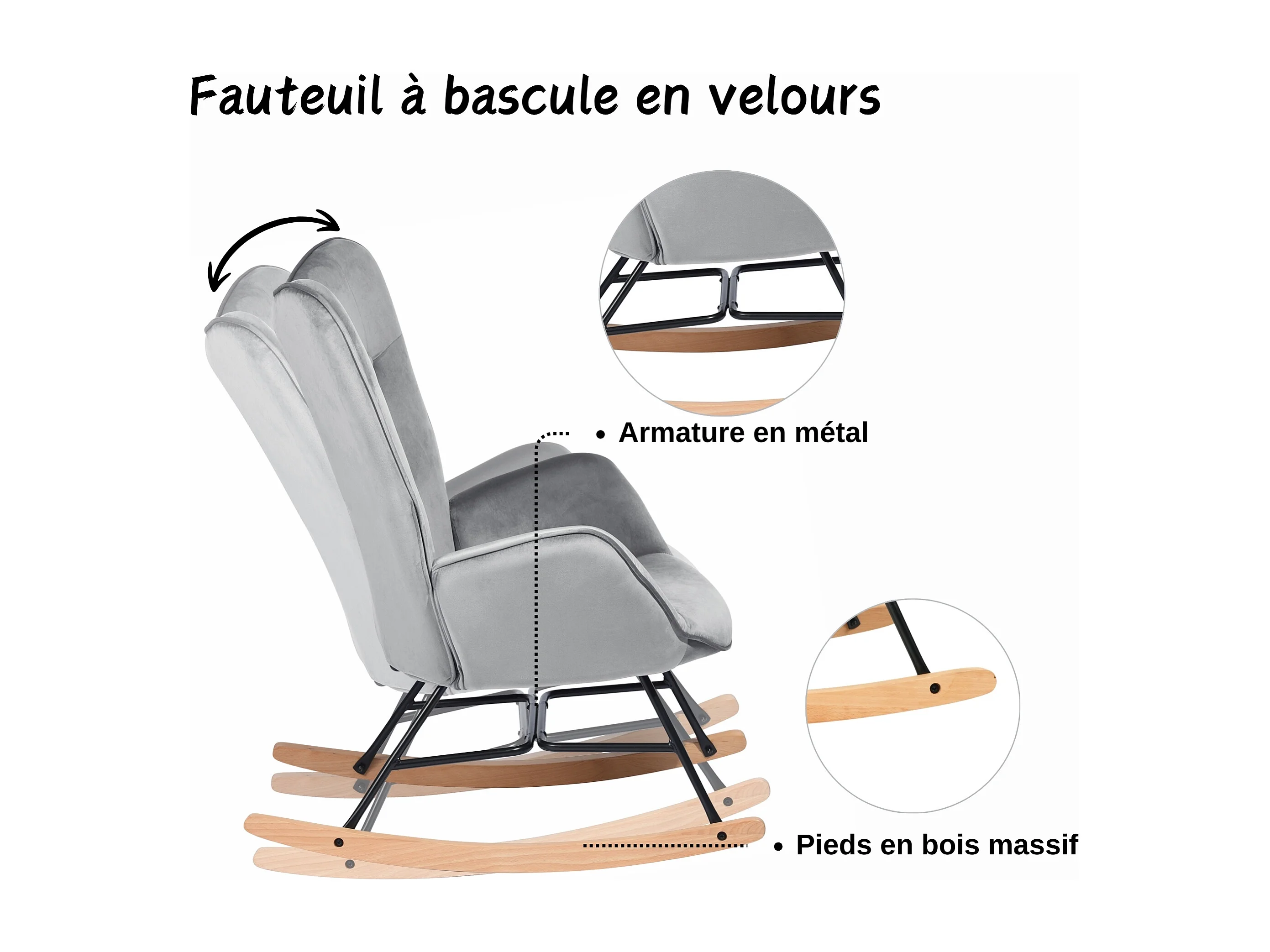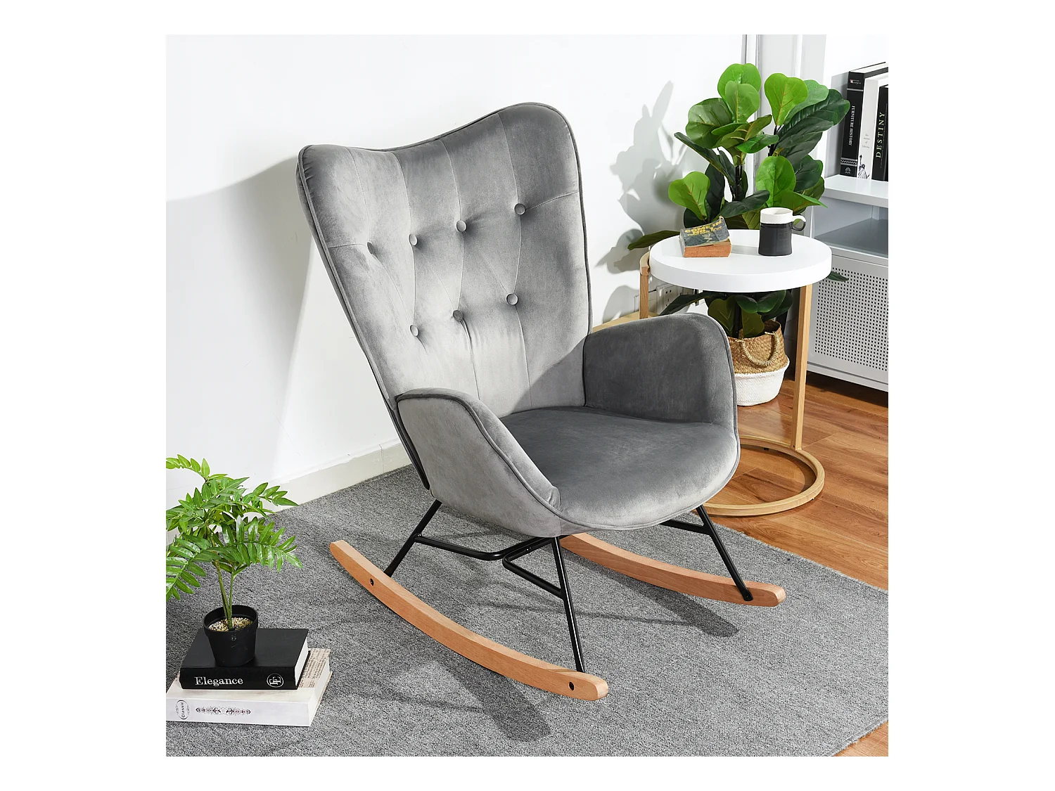 Mecedora escandinava en terciopelo gris patas de madera de haya 68 x 87 x 98 cm EPPING VELVET GRIS OSCURO