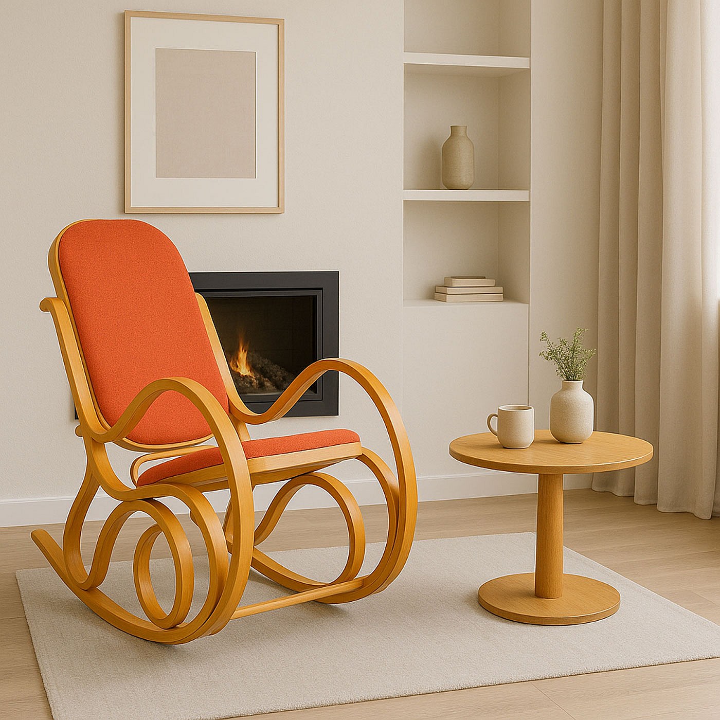 Mecedora Gallarate, aspecto roble, tela/textil naranja