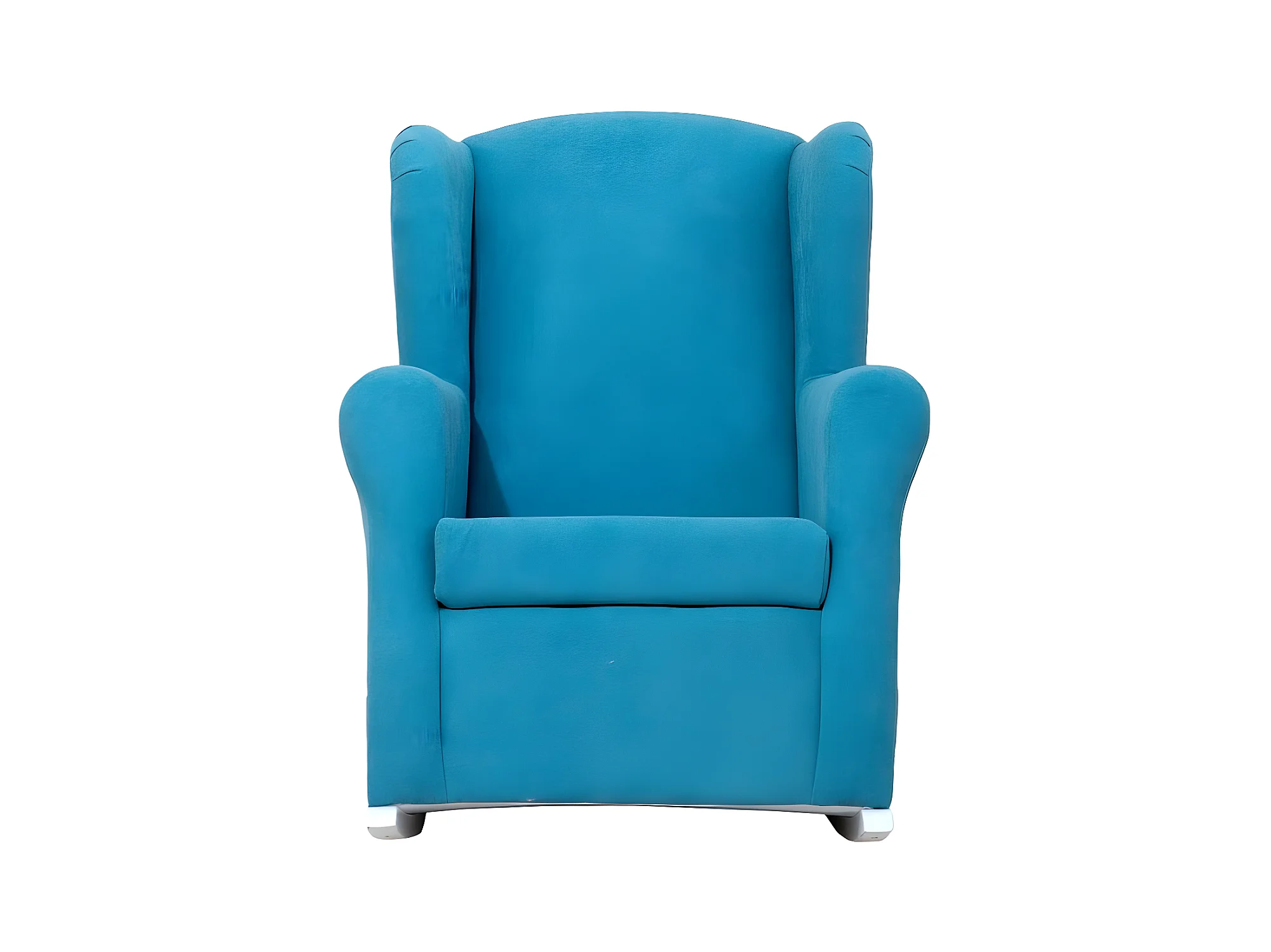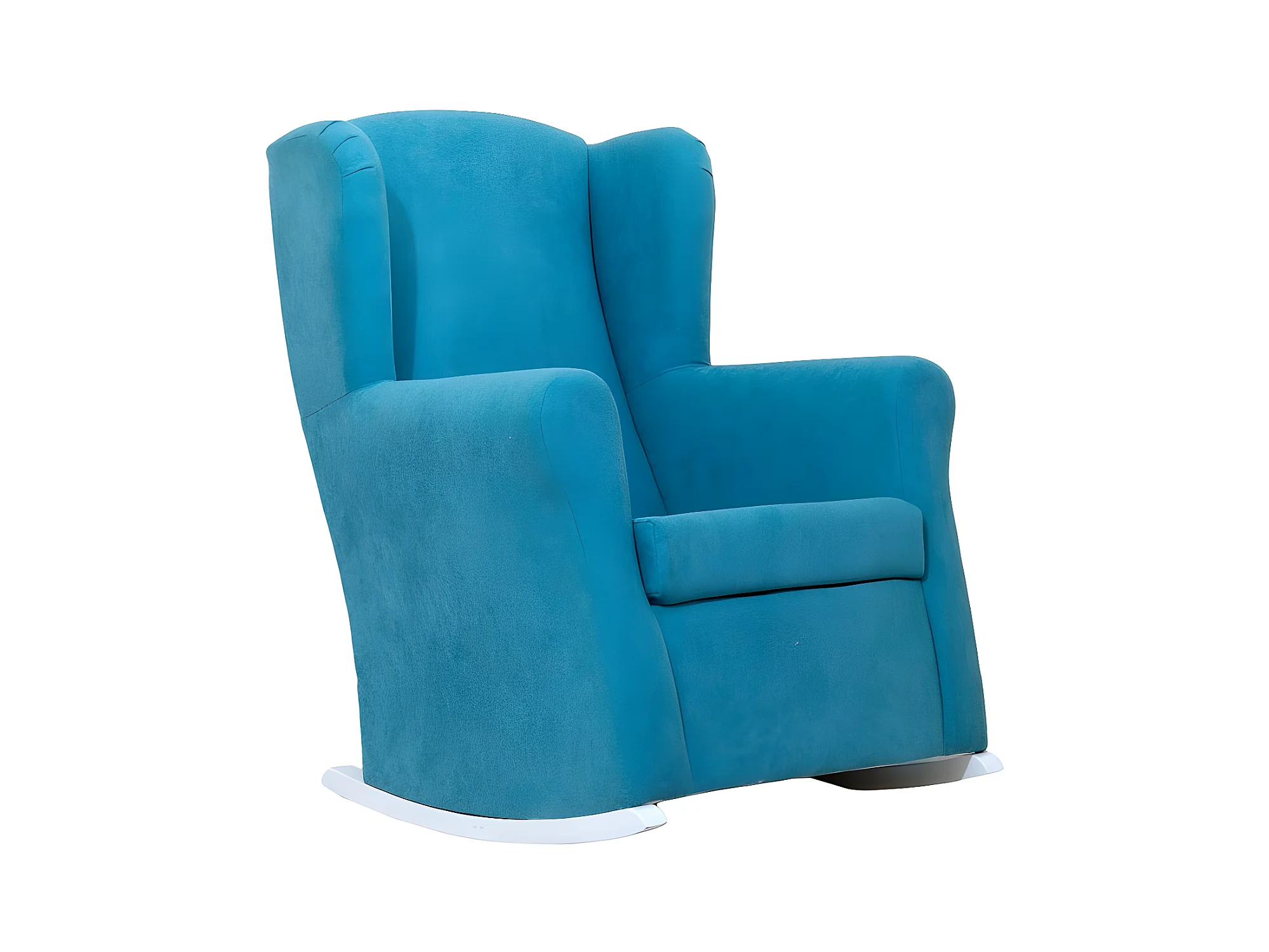 Mecedora con alas, asiento y respaldo tapizados en terciopelo de alta densidad