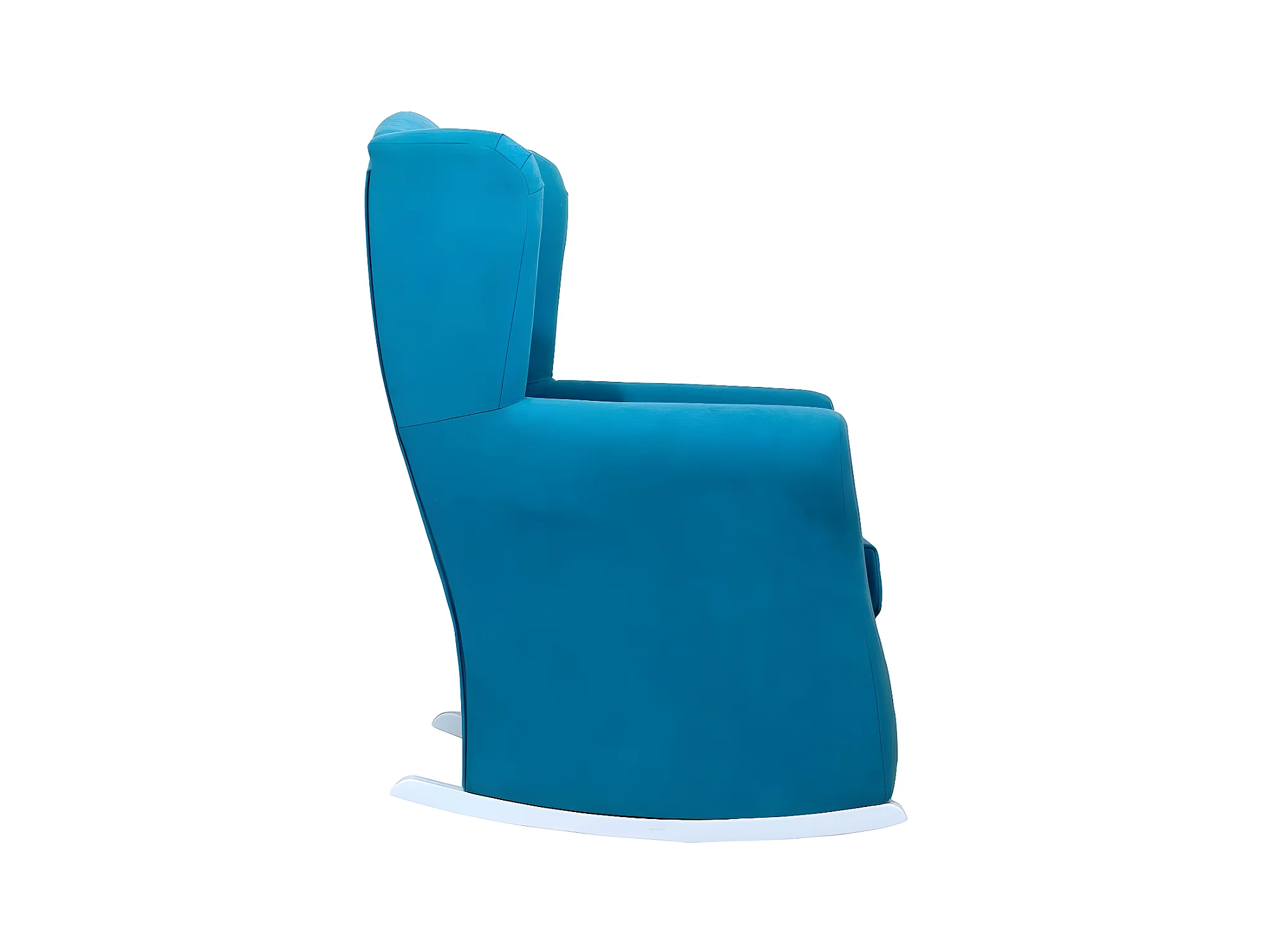 Silla mecedora con patas de madera de caucho terciopelo azul ES14910