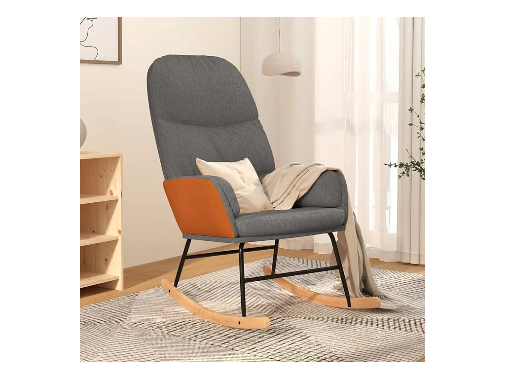Mecedora de tela de felpa, diseño moderno, estructura de madera, gris oscuro (96,5x71x101 cm)