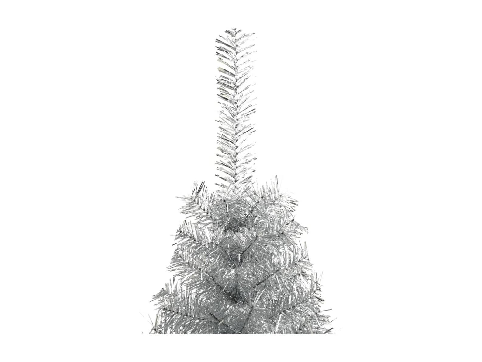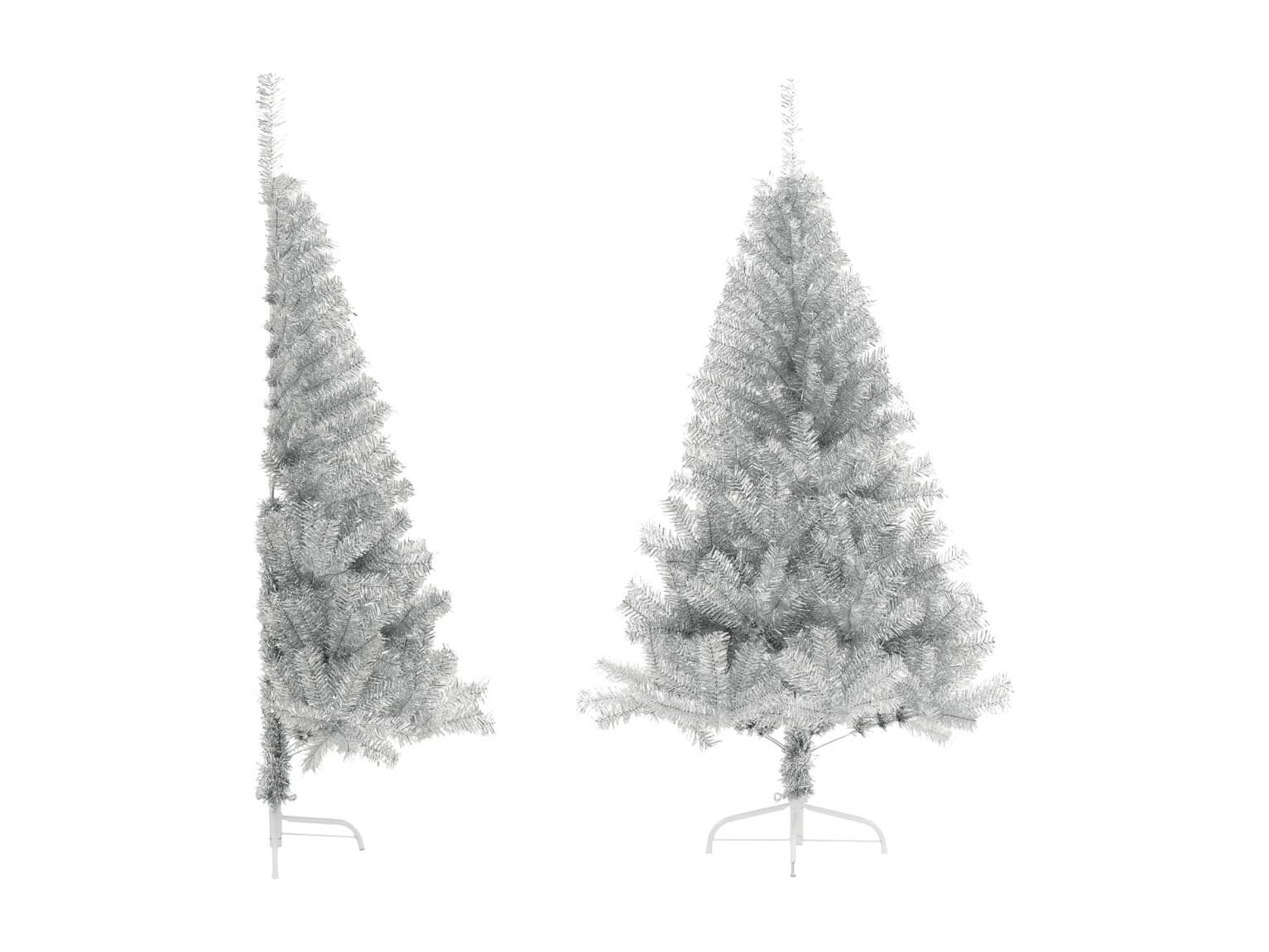 Medio árbol de Navidad artificial y soporte PVC plateado 120 cm