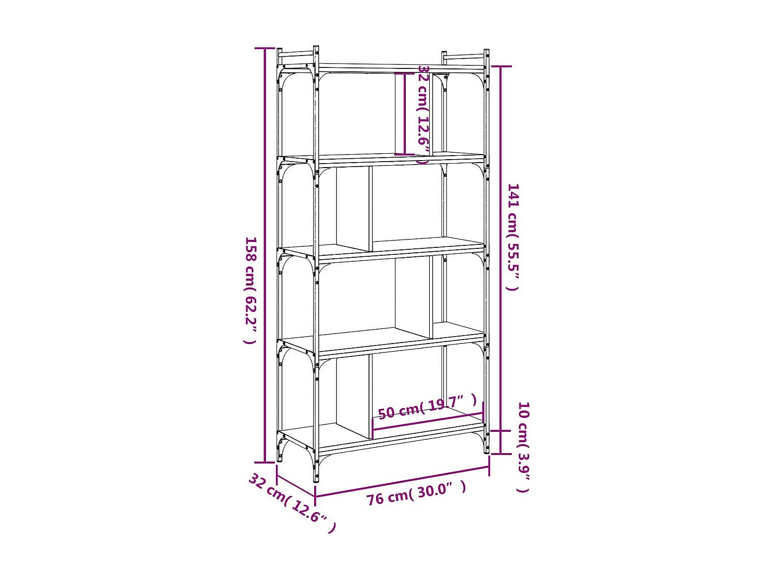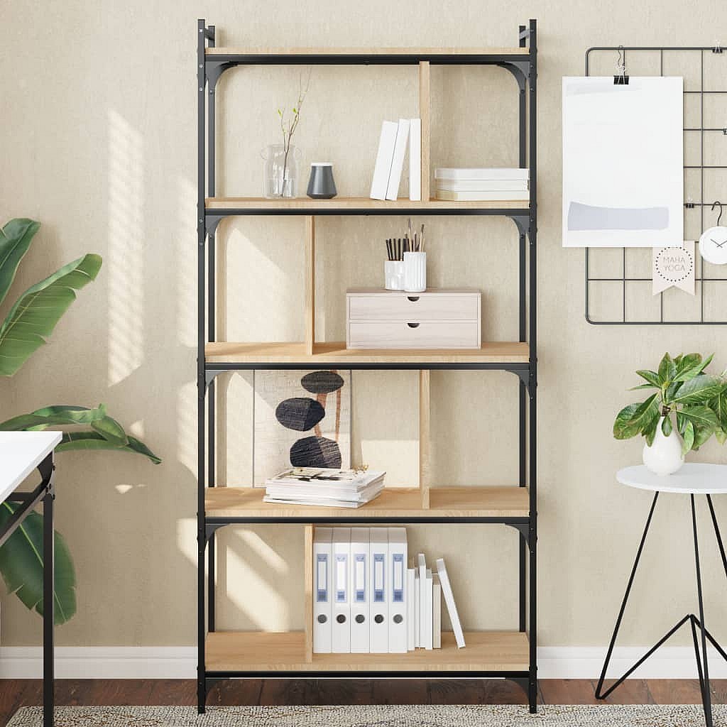 Merse Librería 5 estantes madera ingeniería roble Sonoma 76x32x158 cm