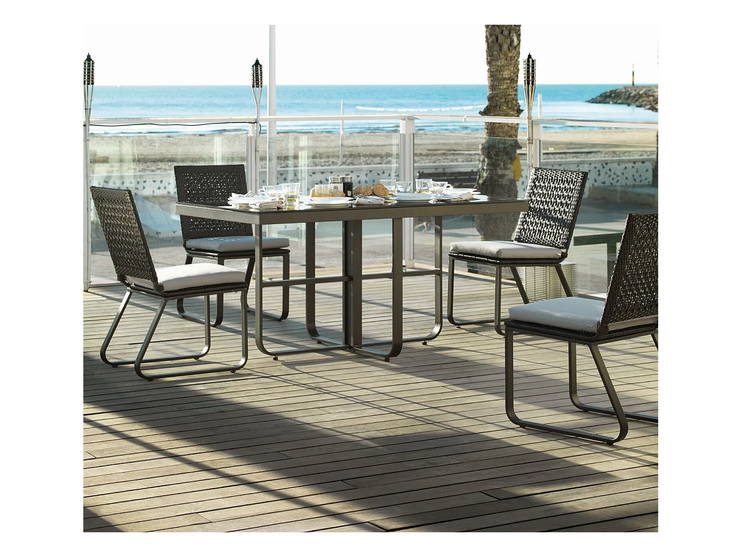 Lote de 4 sillones de aluminio y fibra marrones con cojines grises