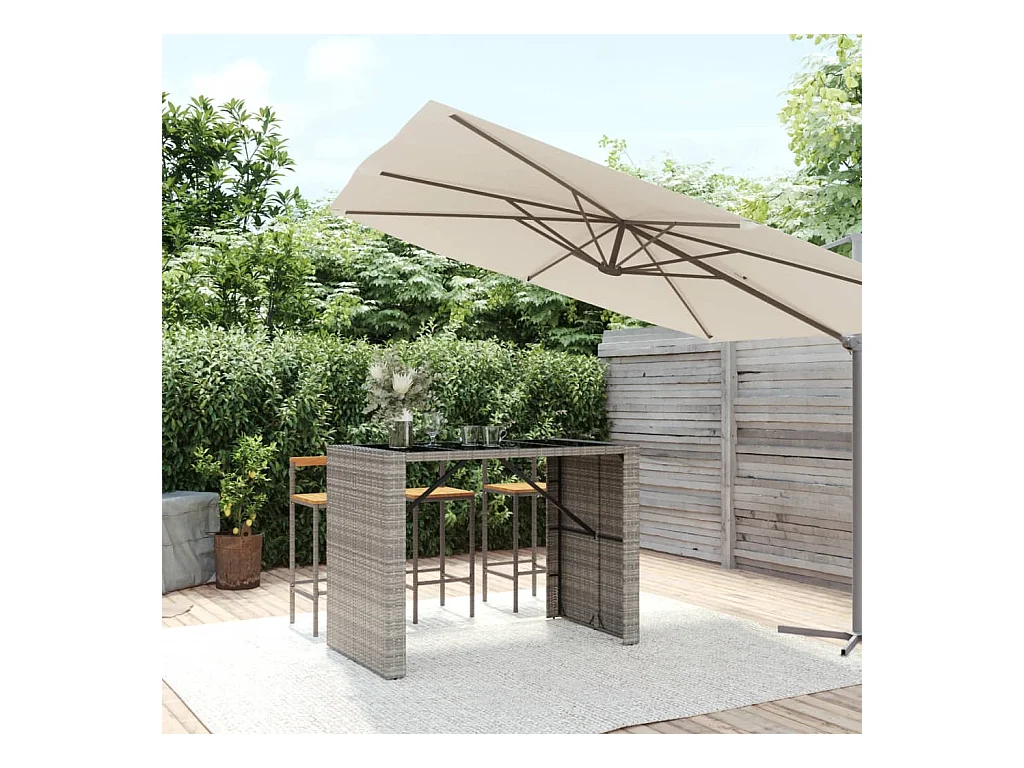Mesa alta bar con superficie vidrio ratán PE gris 180x70x110 cm ES574735