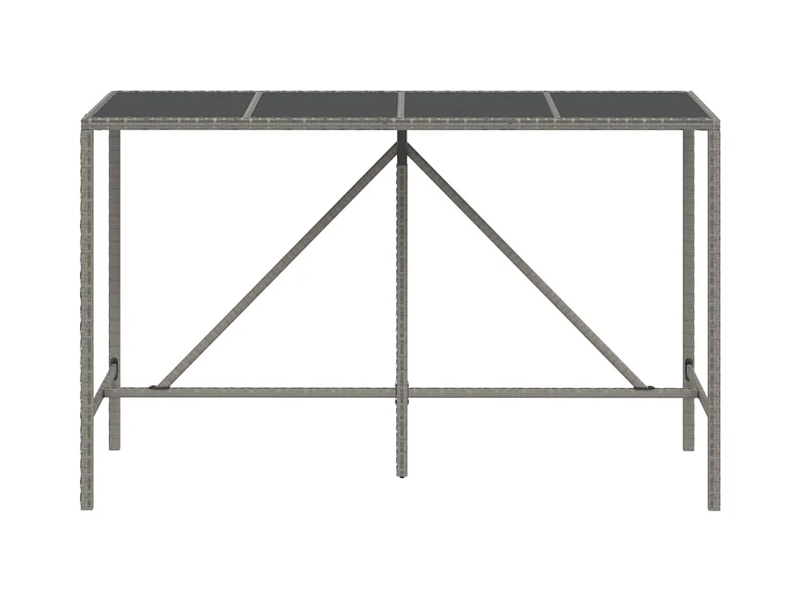 Mesa alta bar con superficie vidrio ratán PE gris 180x70x110 cm ES574735