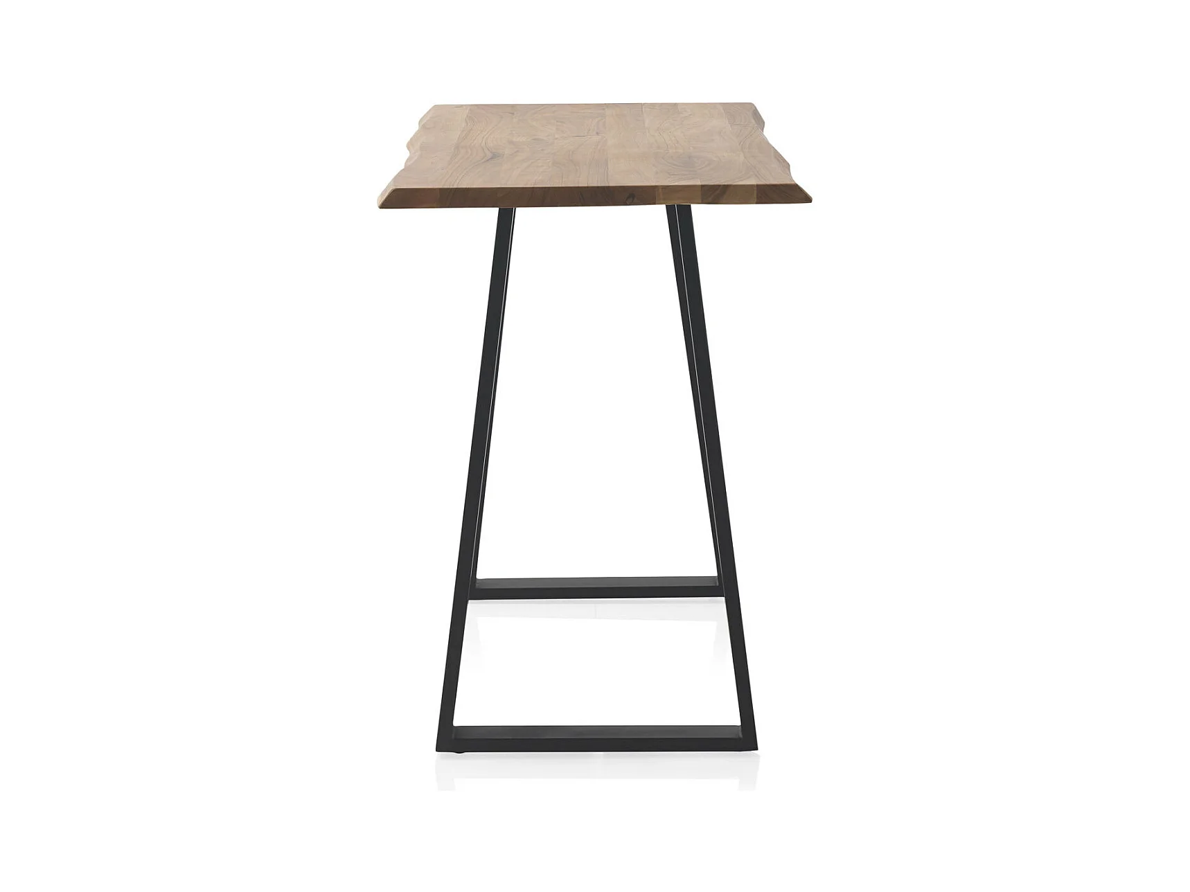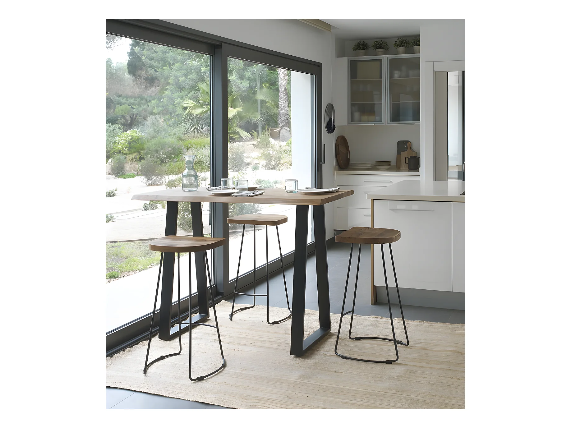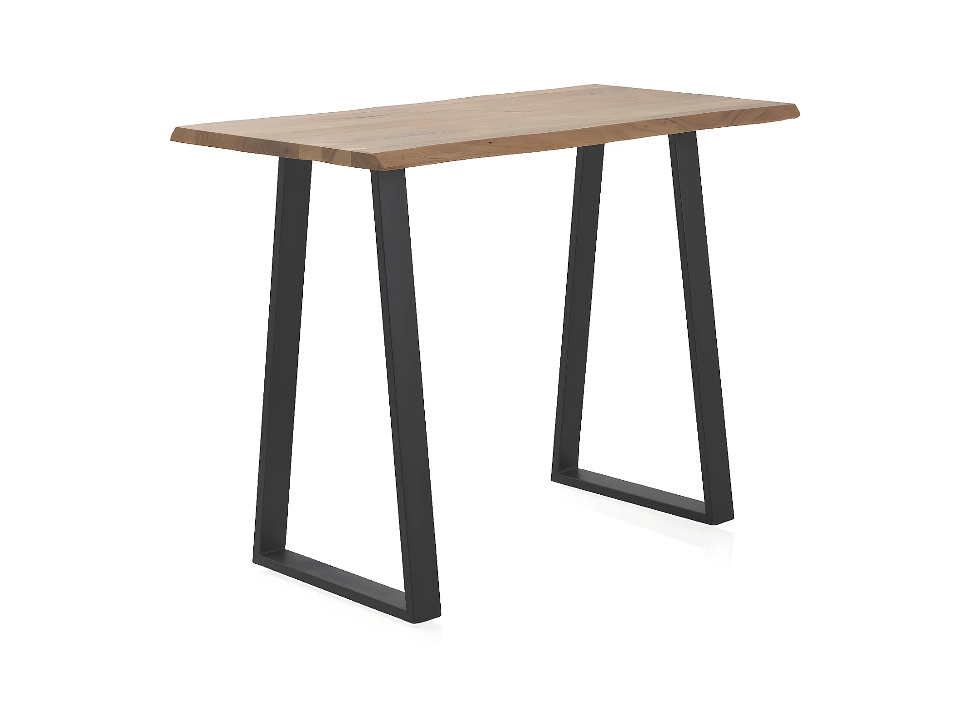 Mesa alta de bar 130x70 de madera maciza de acacia con patas metálicas negras