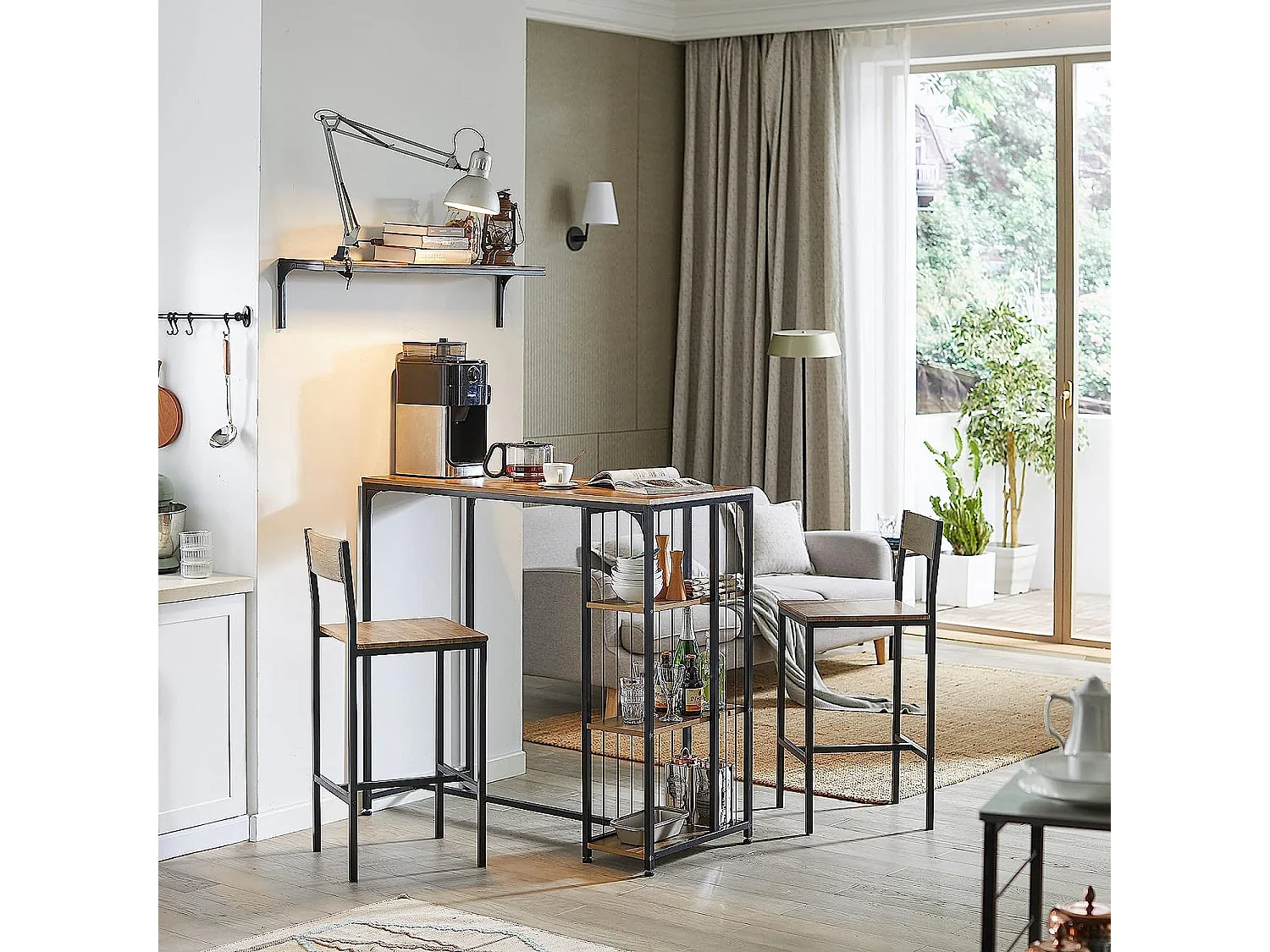 Mesa Alta de Bar Mesa alta de comedor Mesa de bistró con 3 estantes para bar Estructura de Metal, L115 x P50 x H107 cm FWT84-PF SoBuy ES