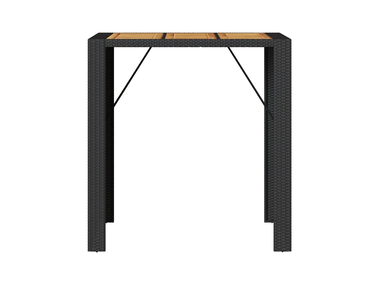 Mesa alta jardín superficie madera ratán PE negro 105x80x110 cm