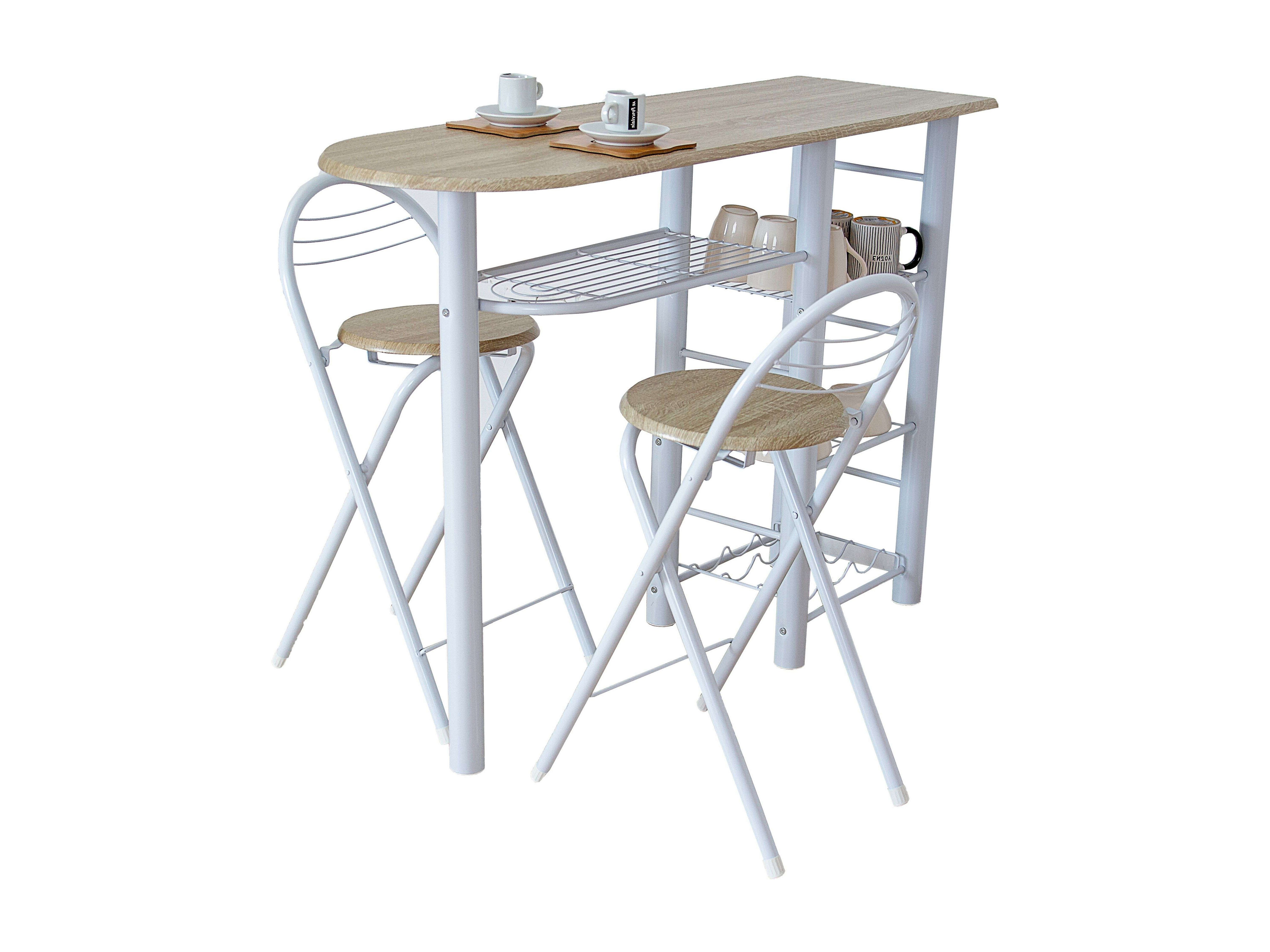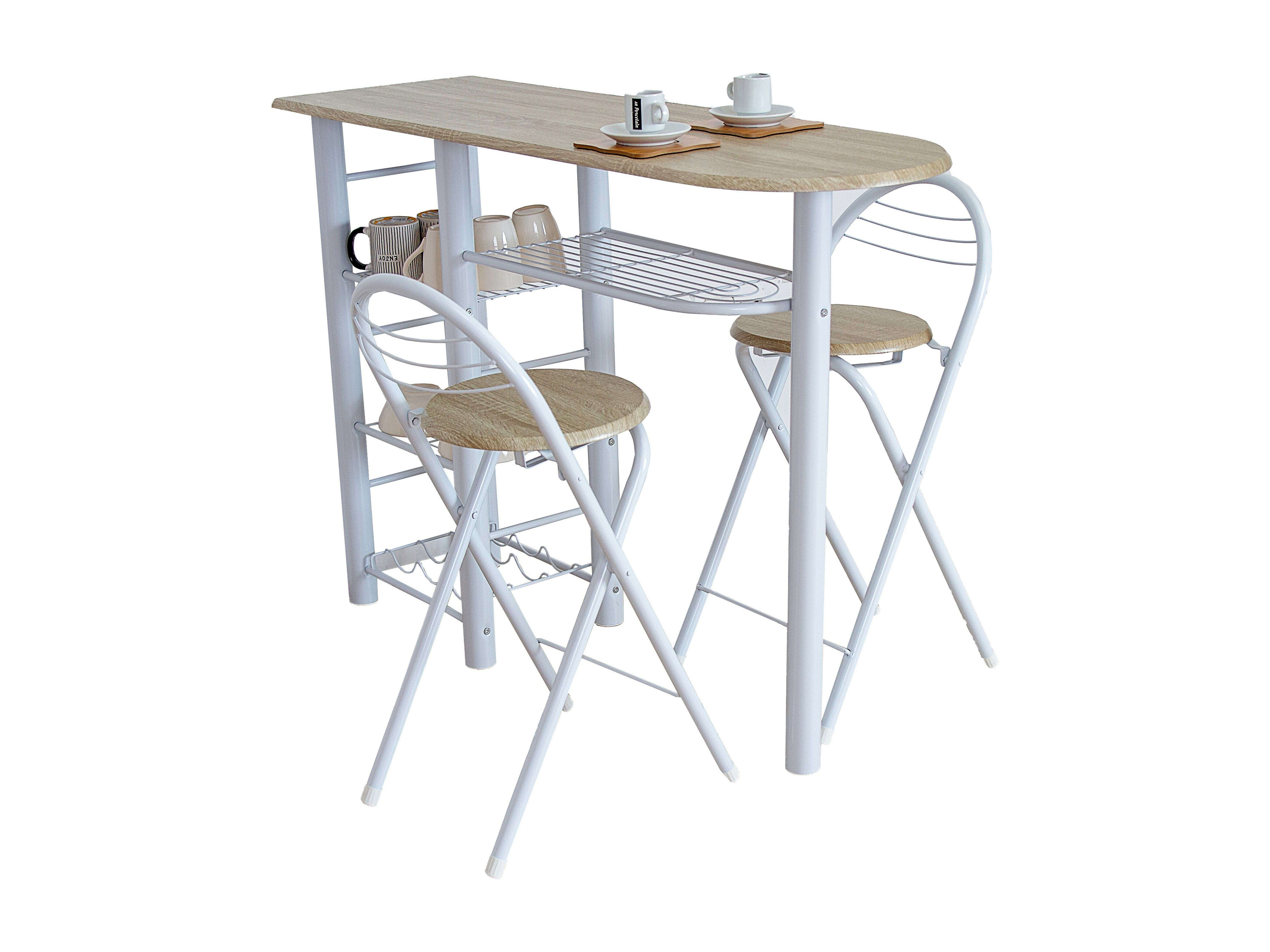 Mesa Alta Office Estilo Nórdico Blanco/Madera 2 Taburetes 40x88x120 cm