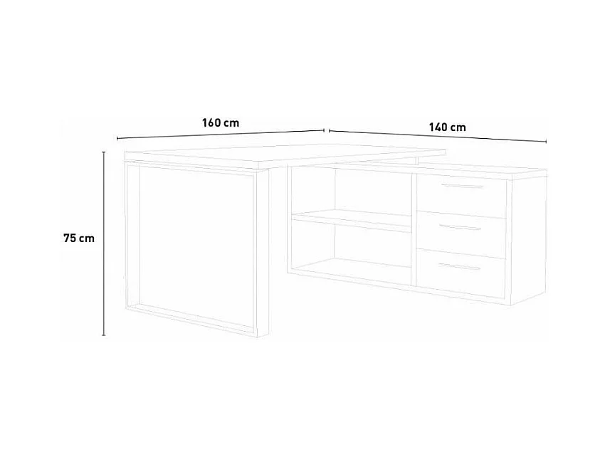 Mesa angular con península 3 cajones para oficina y despacho 160x140cm Raffaello