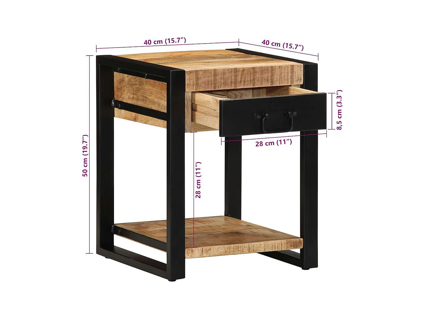 Mesa auxiliar 40x40x50 cm madera maciza de mango en bruto
